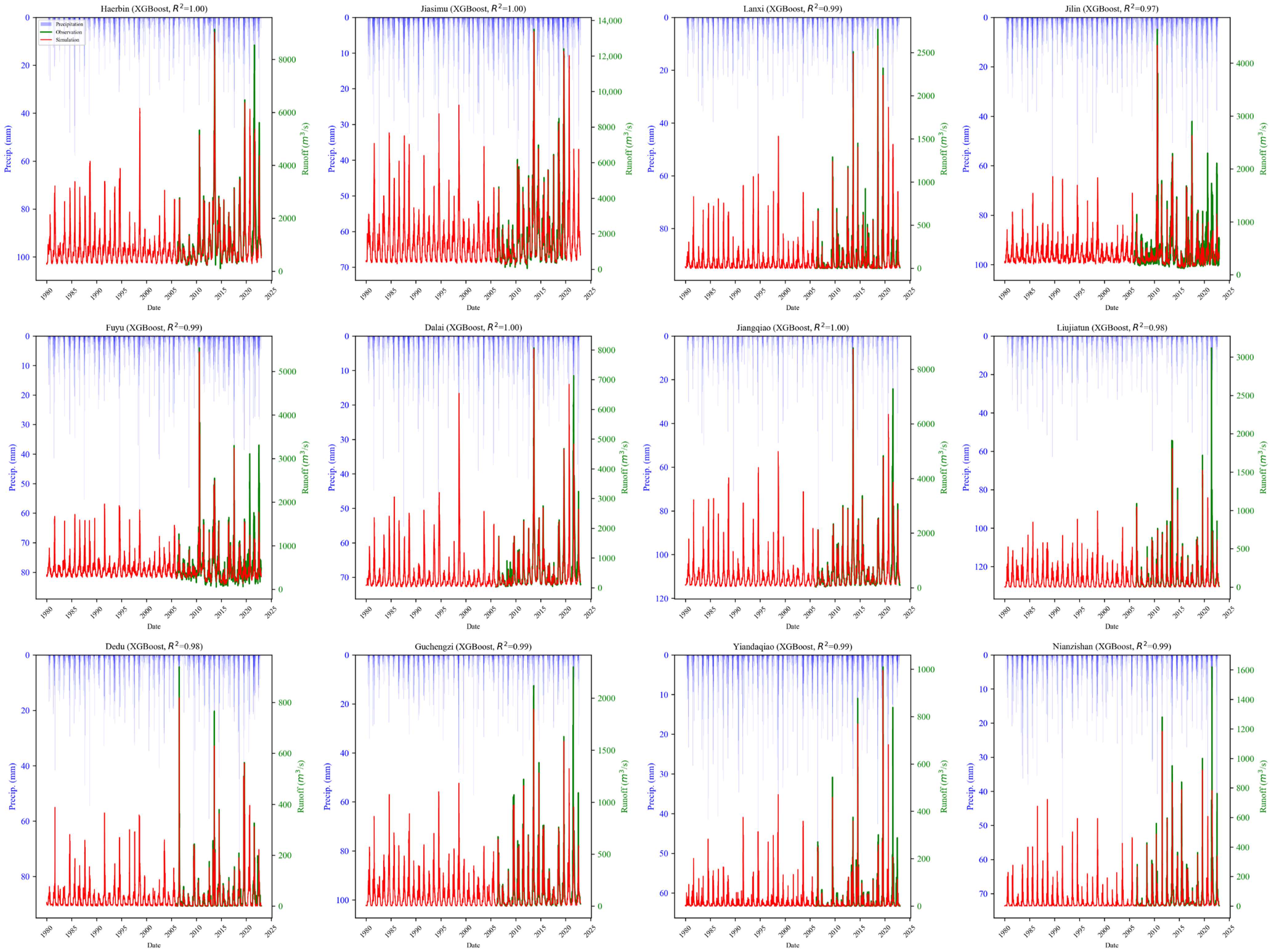 - The integrated XGBoost–Savitzky–Golay hybrid algorithm achieved high-precision simulation of complex hydrological processes, demonstrating strong generalization capability under varying climate conditions.