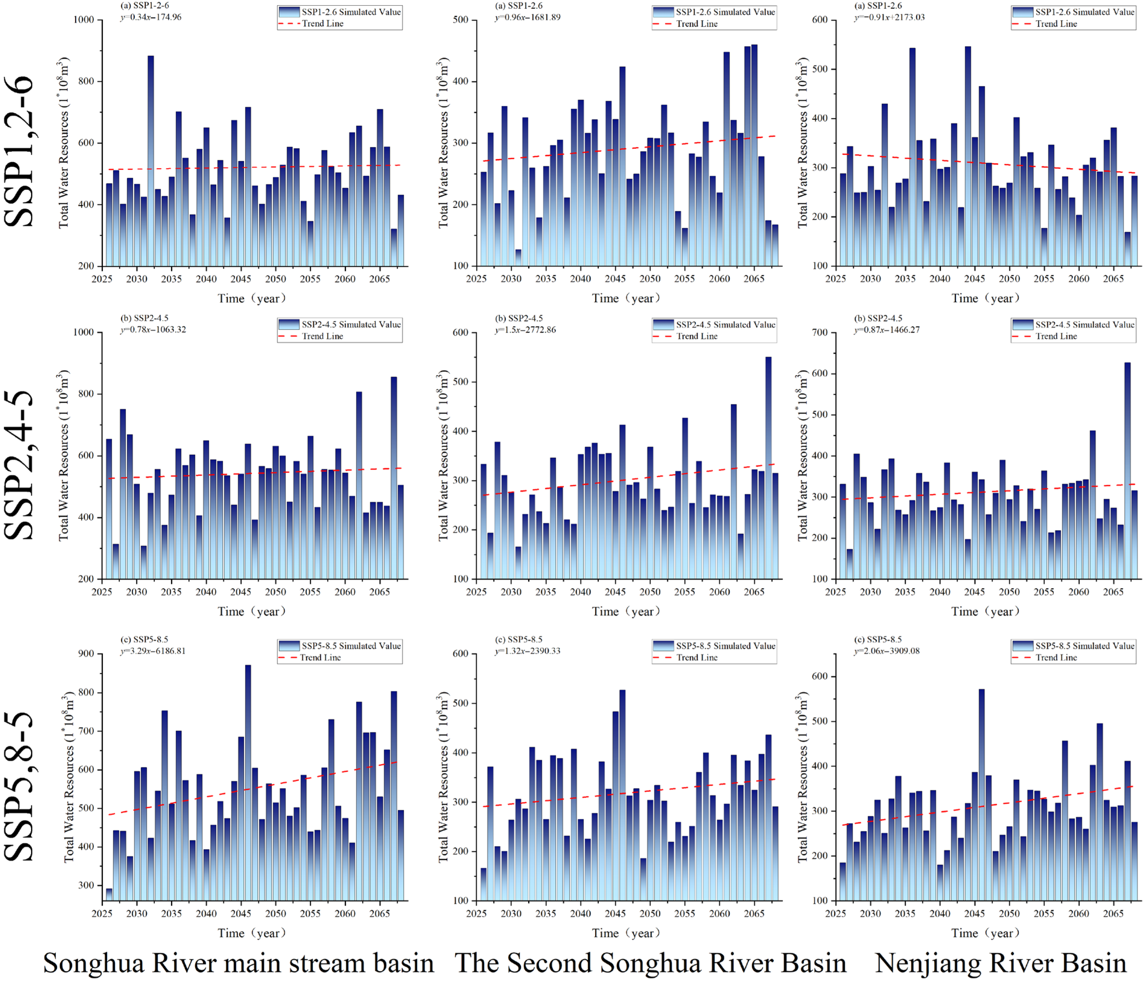 Nenjiang River Basin | Average Annual Runoff (1 × 108 m3) | 302.27 | 308.67 | 312.94 | 312.54 |