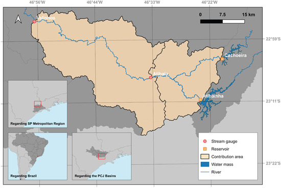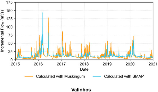 In contrast, Valinhos stream gauge results, with its daily minimum of 10 m3s−1, are plotted in Figure 12.