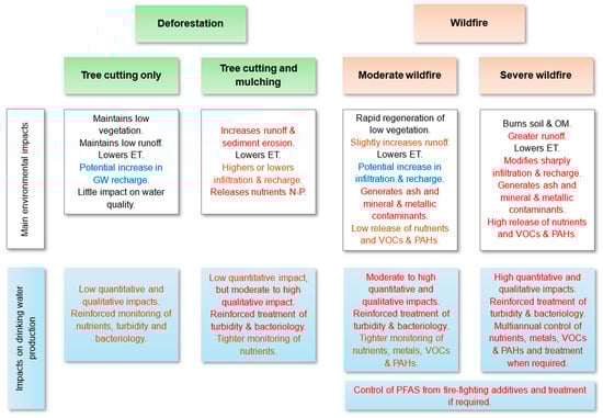 Banton O, St-Pierre S, Banton G, Laures N, Triganon A. A Review of the Key Impacts of Deforestation and Wildfires on Water Resources with Regard to the Production of Drinking Water. Hydrology. 2025; 12(10):271. https://doi.org/10.3390/hydrology12100271