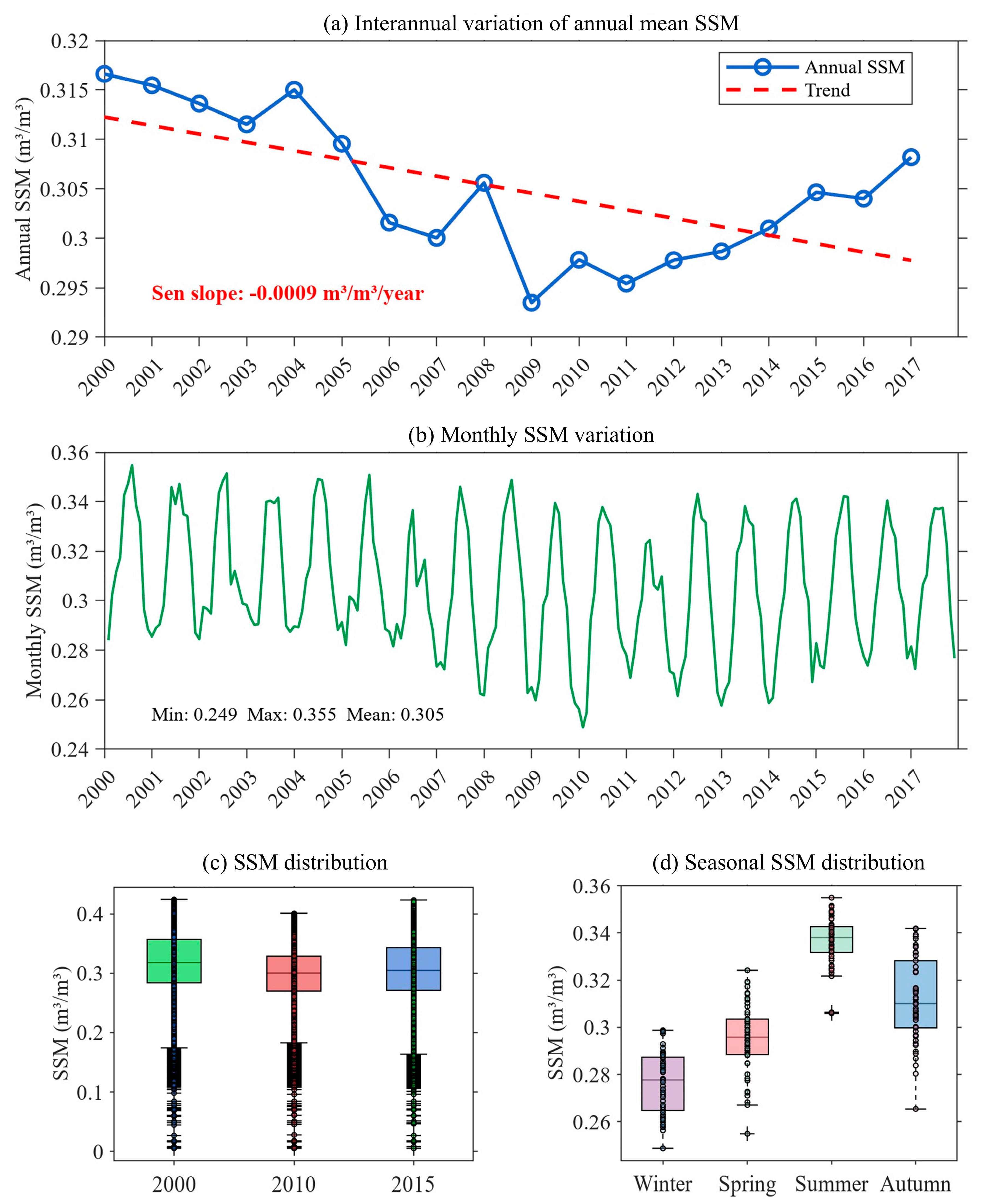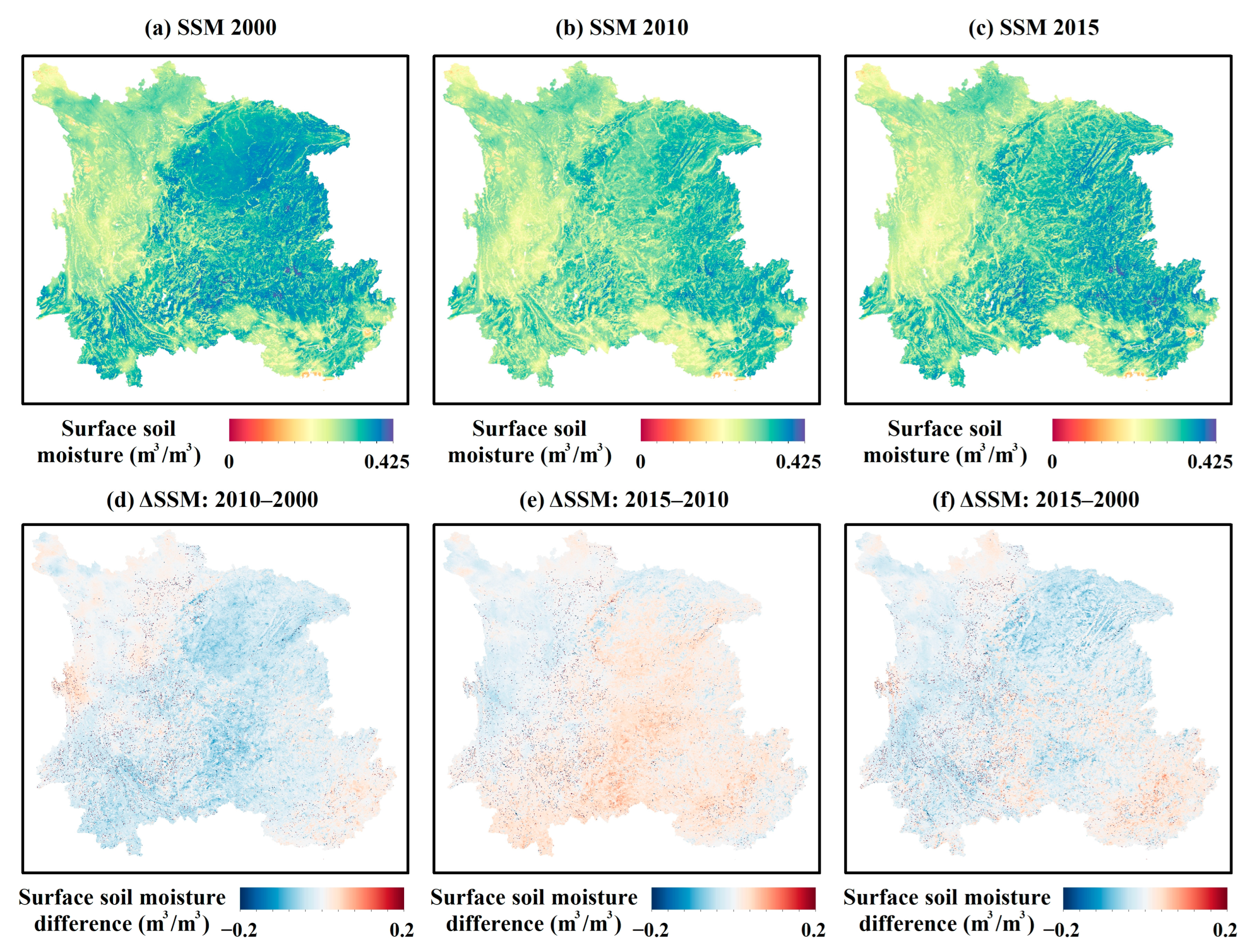 3.1. Spatiotemporal Dynamics of Surface Soil Moisture