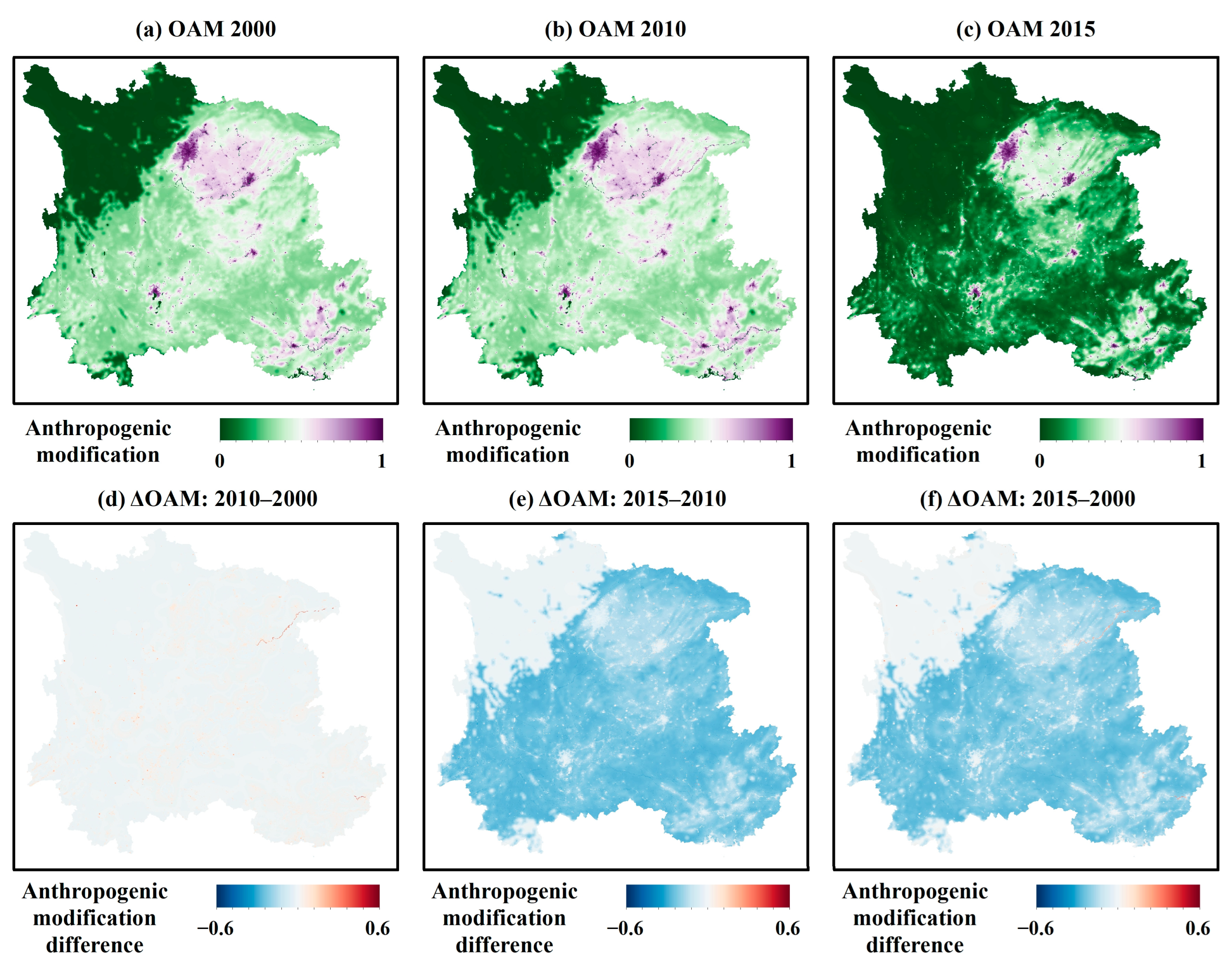 3.2. Spatiotemporal Dynamics of Anthropogenic Modification