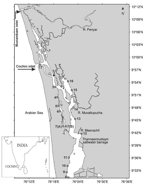 - Balachandran, K.K.; Joseph, T.; Nair, K.K.C.; Nair, M.; Joseph, P.S. The Complex Estuarine Formation of Six Rivers (Cochin Backwaters System on West Coast of India)—Sources and Distribution of Trace Metals and Nutrients. 2002. Available online: https://drs.nio.org/drs/handle/2264/1340 (accessed on 30 August 2025).
