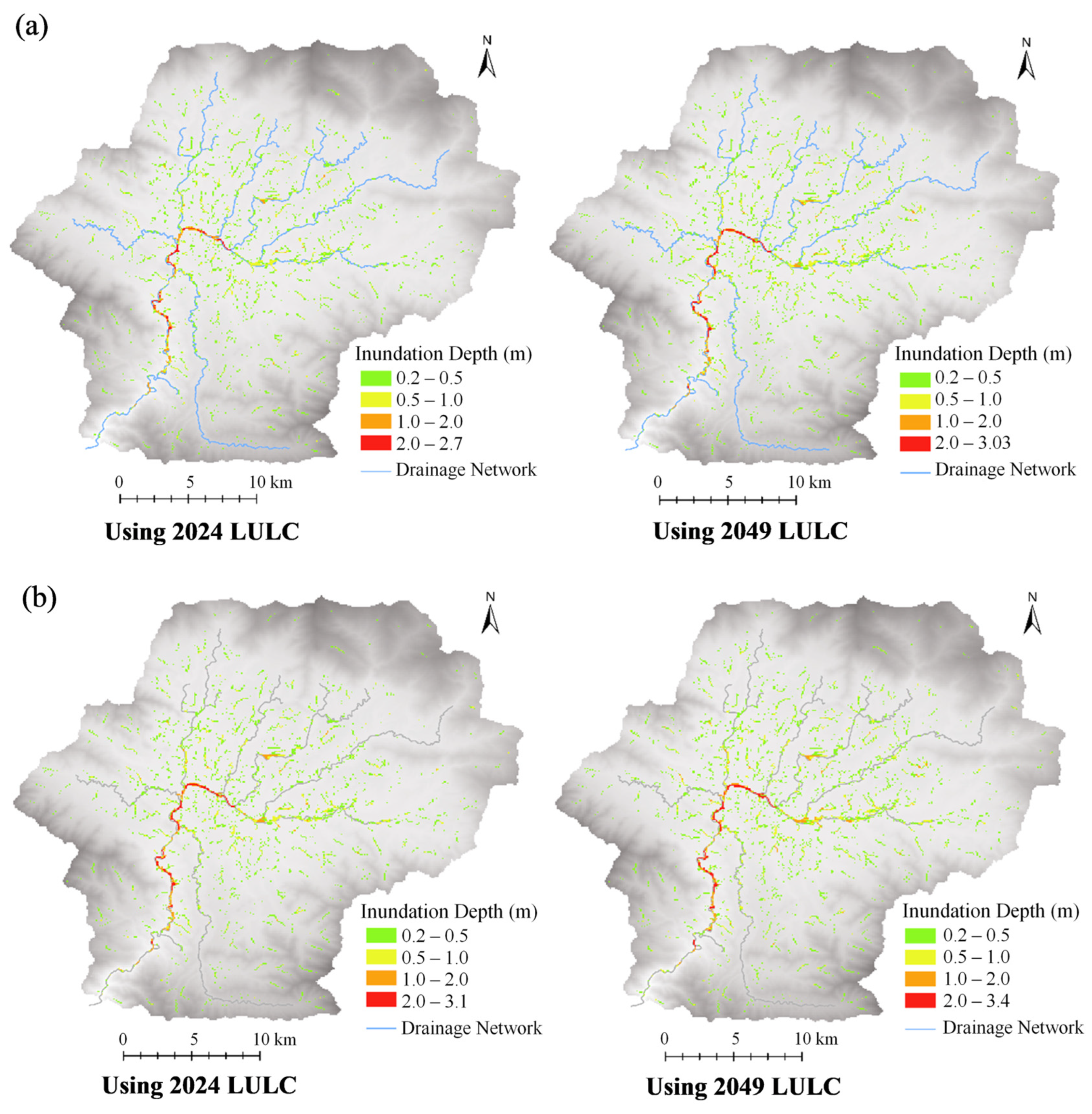 | Using 2024 LULC (base case) | 22.57 | - | 10.539 | - | 25.92 | - | 12.71 | - |
