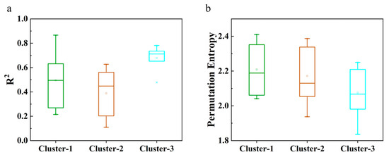 Box–whisker plot of (a) R2 and (b) Permutation Entropy of MT-TFT at different observation clusters.