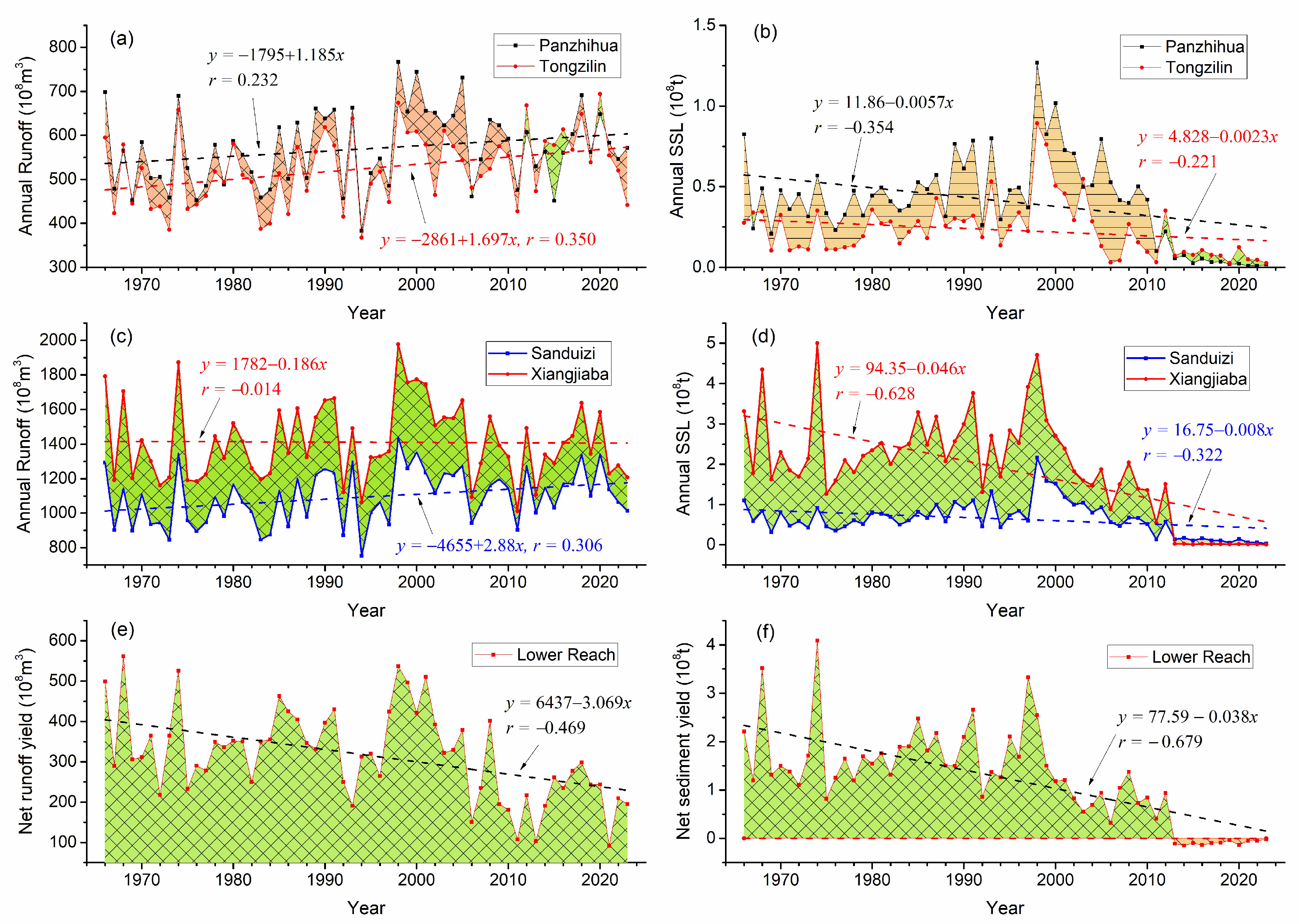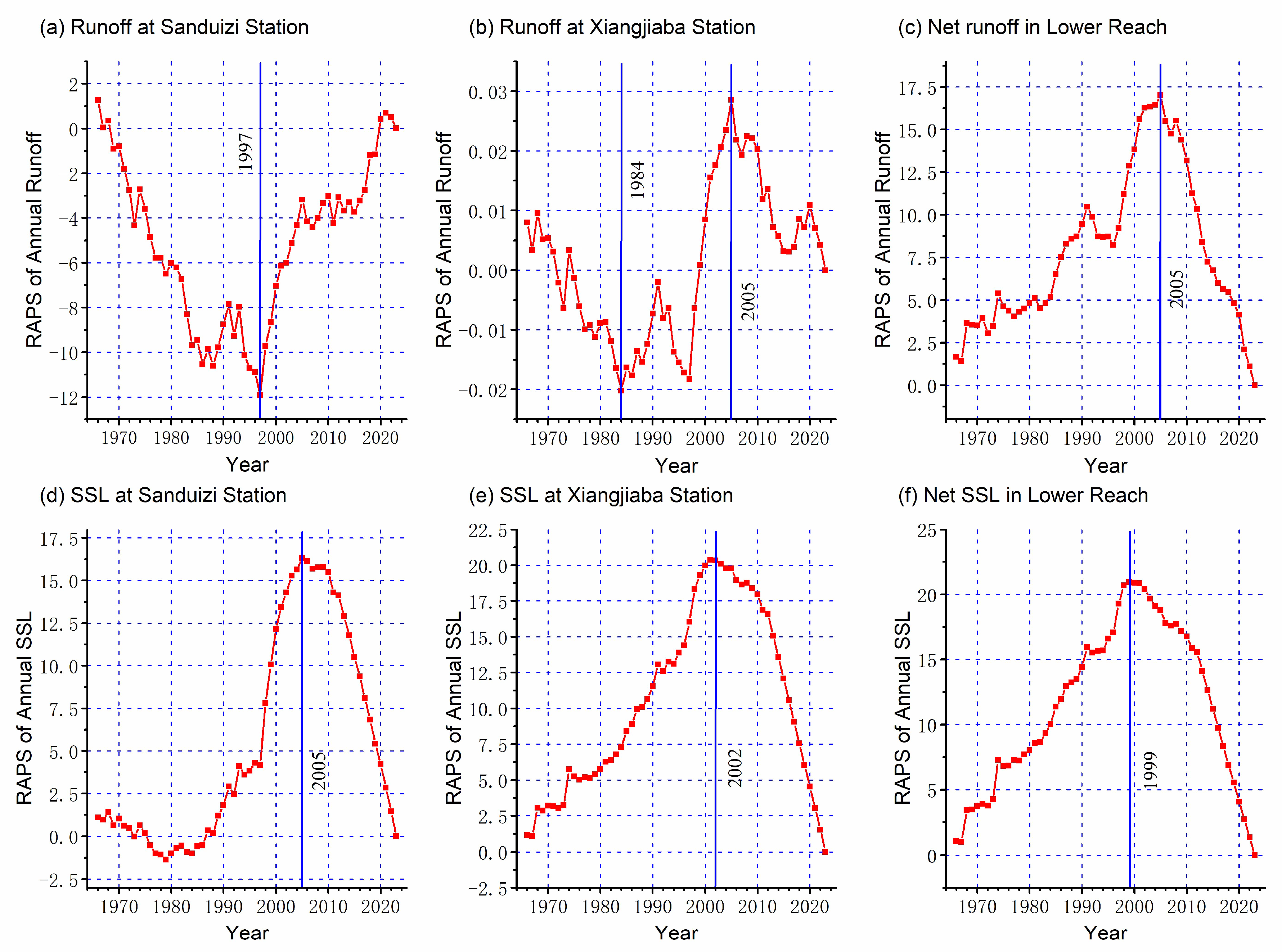 - At least in the next few decades, climate factors will remain the dominant factor controlling the inter-annual variation in runoff in the study area; however, human activities will completely control the sediment outflow of the reach and also restrict the intra-annual distribution of runoff and sediment.