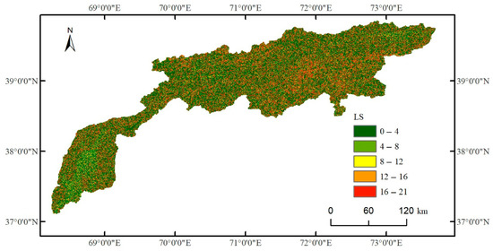 Spatial distribution of the LS factor in the Vakhsh river basin.