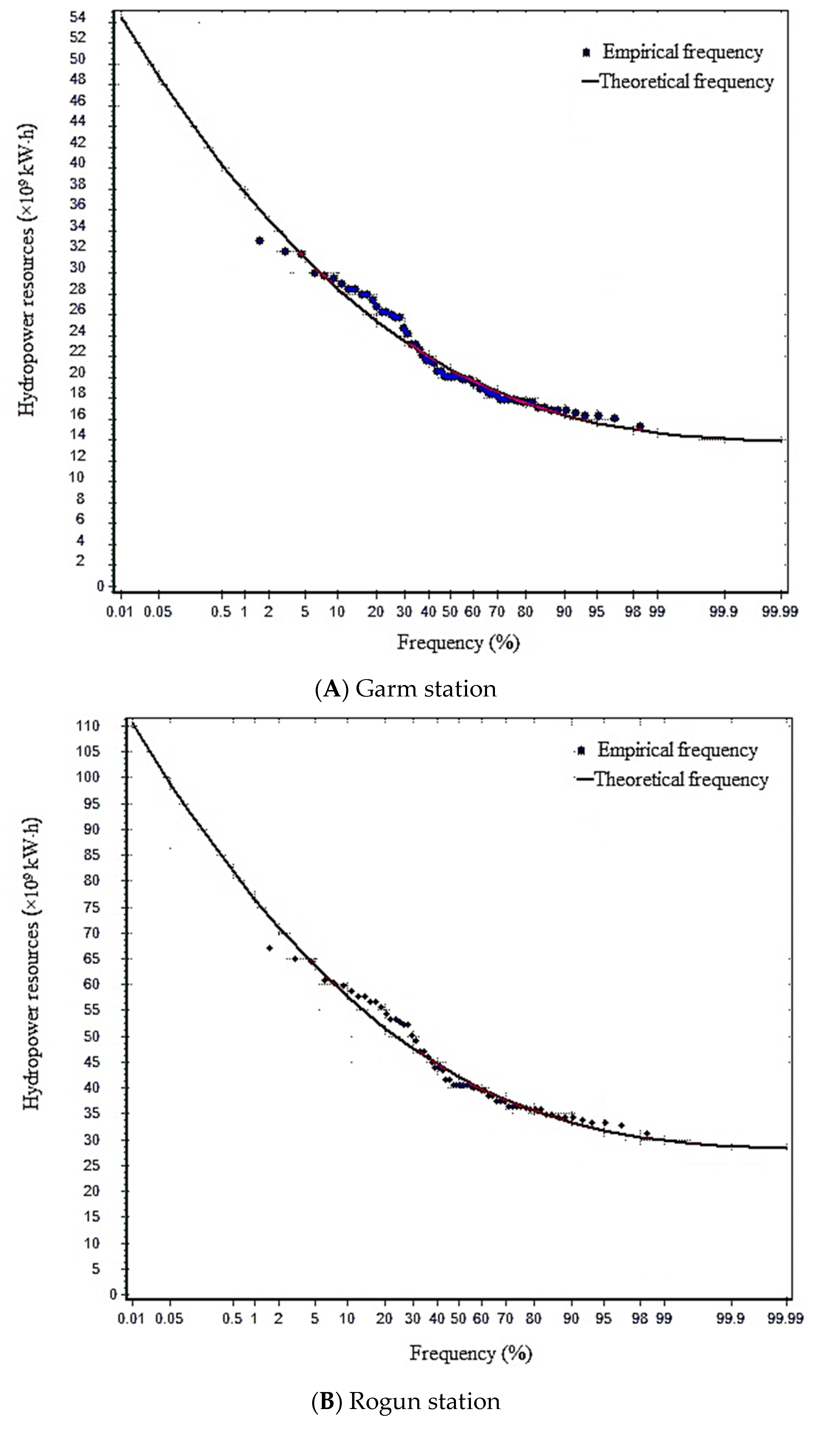 3.1.2. Frequency Distribution Characteristics of Hydropower Resources