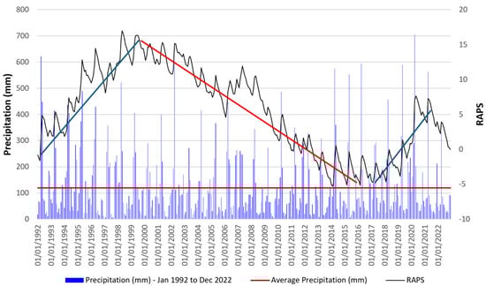 The RAPS method is designed to analyze time series (such as precipitation, runoff, temperature, river flow) to identify irregularities, discontinuities, regime shifts, or subperiods that are not evident with traditional linear trend methods [,,,].