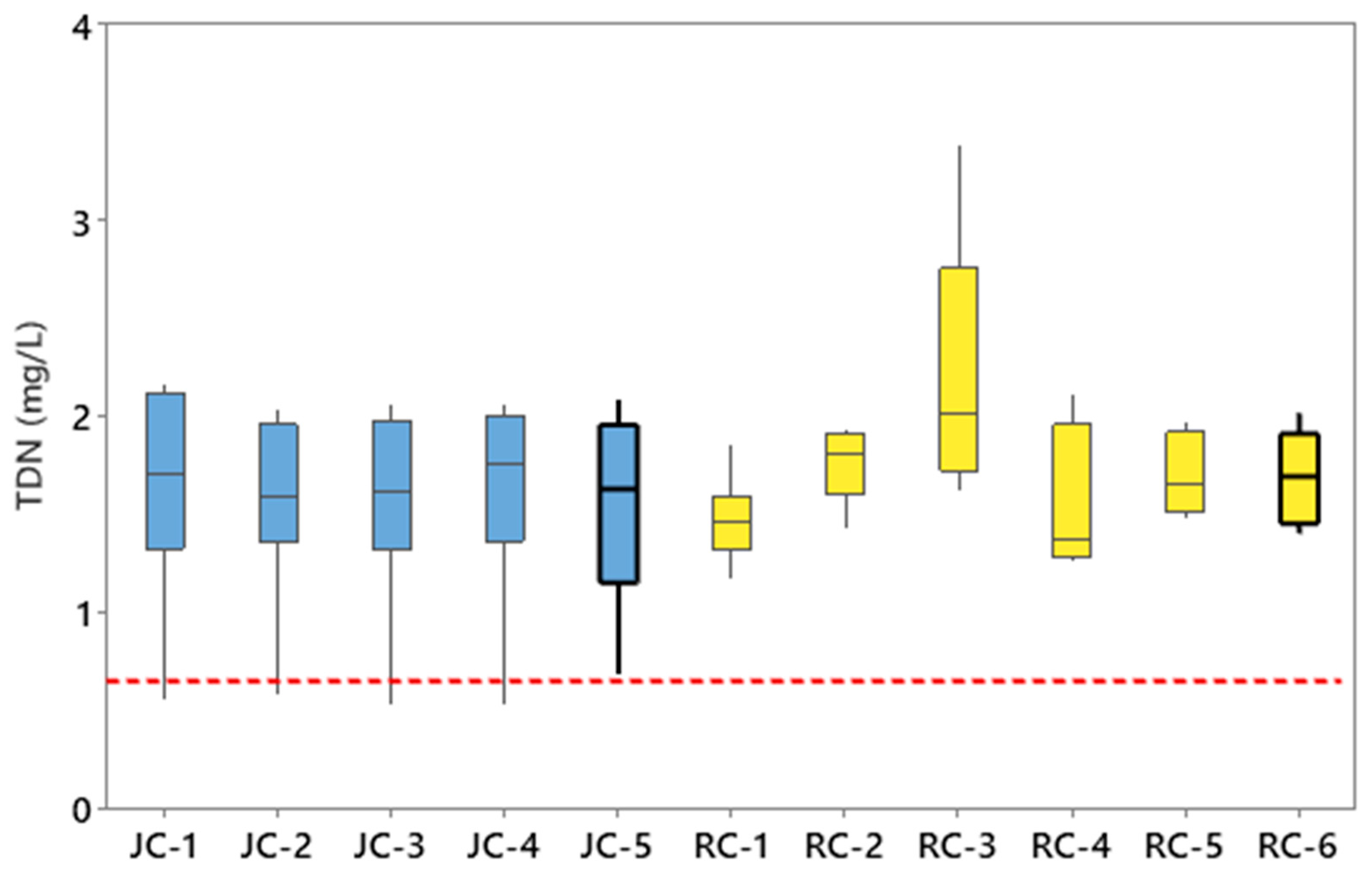 - Chen, N.; Hong, H. Nitrogen export by surface runoff from a small agricultural watershed in southeast China: Seasonal pattern and primary mechanism. Biogeochemistry 2011, 106, 311–321. [Google Scholar] [CrossRef]
