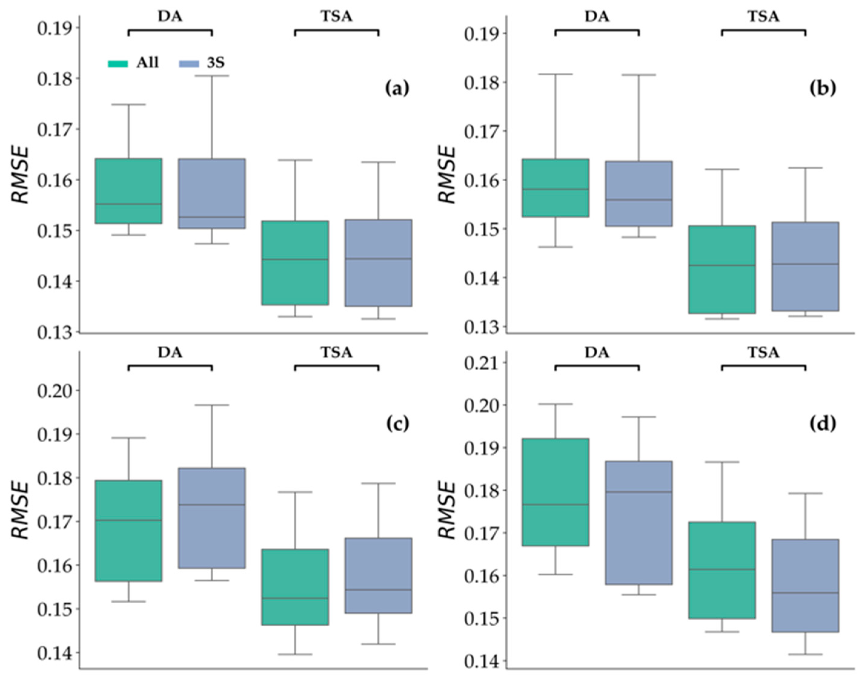 Table 6. RF model regression performance for direct (DA) and two-step (TSA) approaches and different station configurations: all stations (All), cluster (Clr), three most correlated stations (3S).