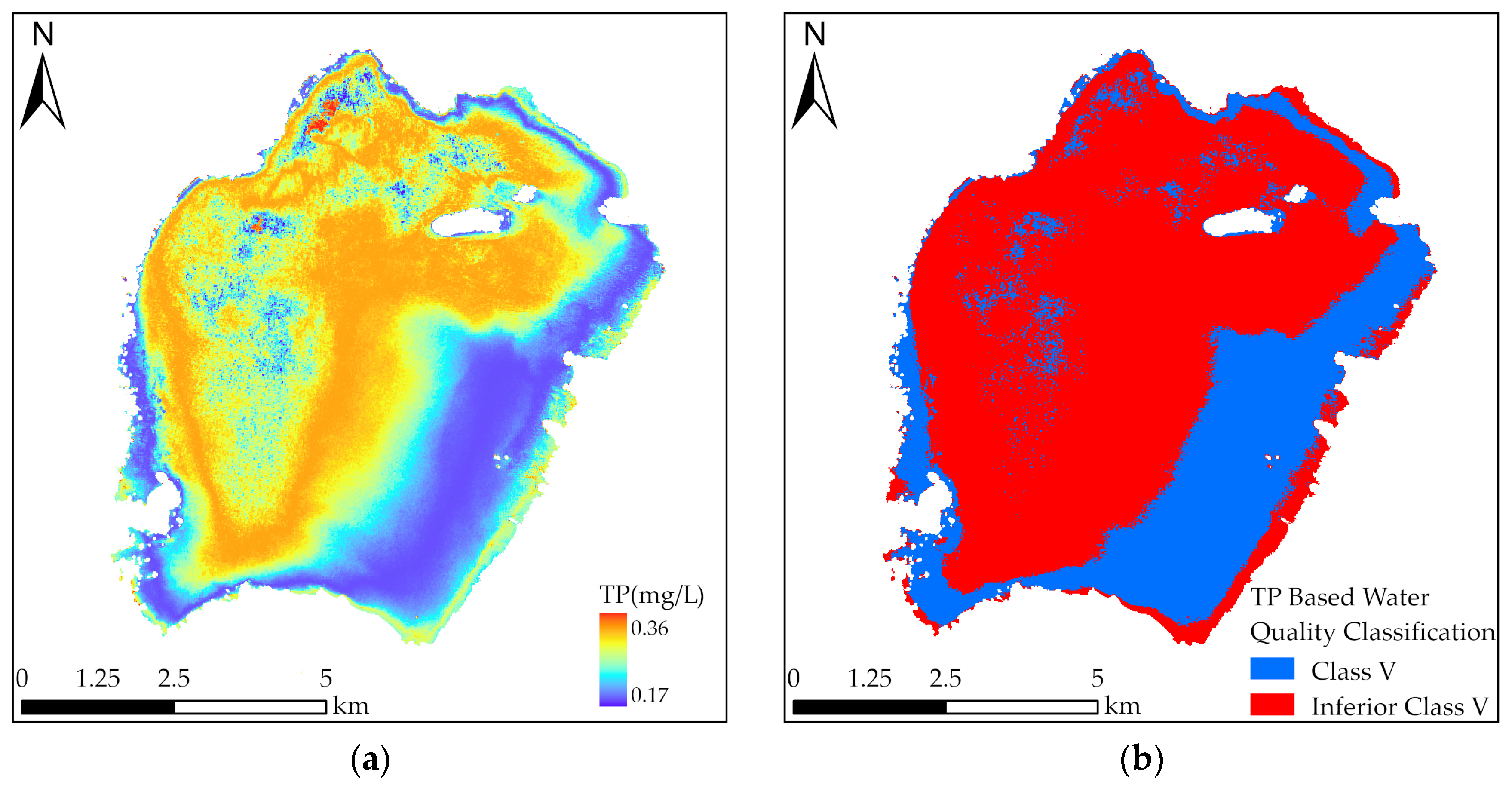 - Wu, C.; Wu, J.; Qi, J.; Zhang, L.; Huang, H.; Lou, L.; Chen, Y. Empirical estimation of total phosphorus concentration in the mainstream of the qiantang river in china using landsat tm data. Int. J. Remote Sens. 2010, 31, 2309–2324. [Google Scholar] [CrossRef]