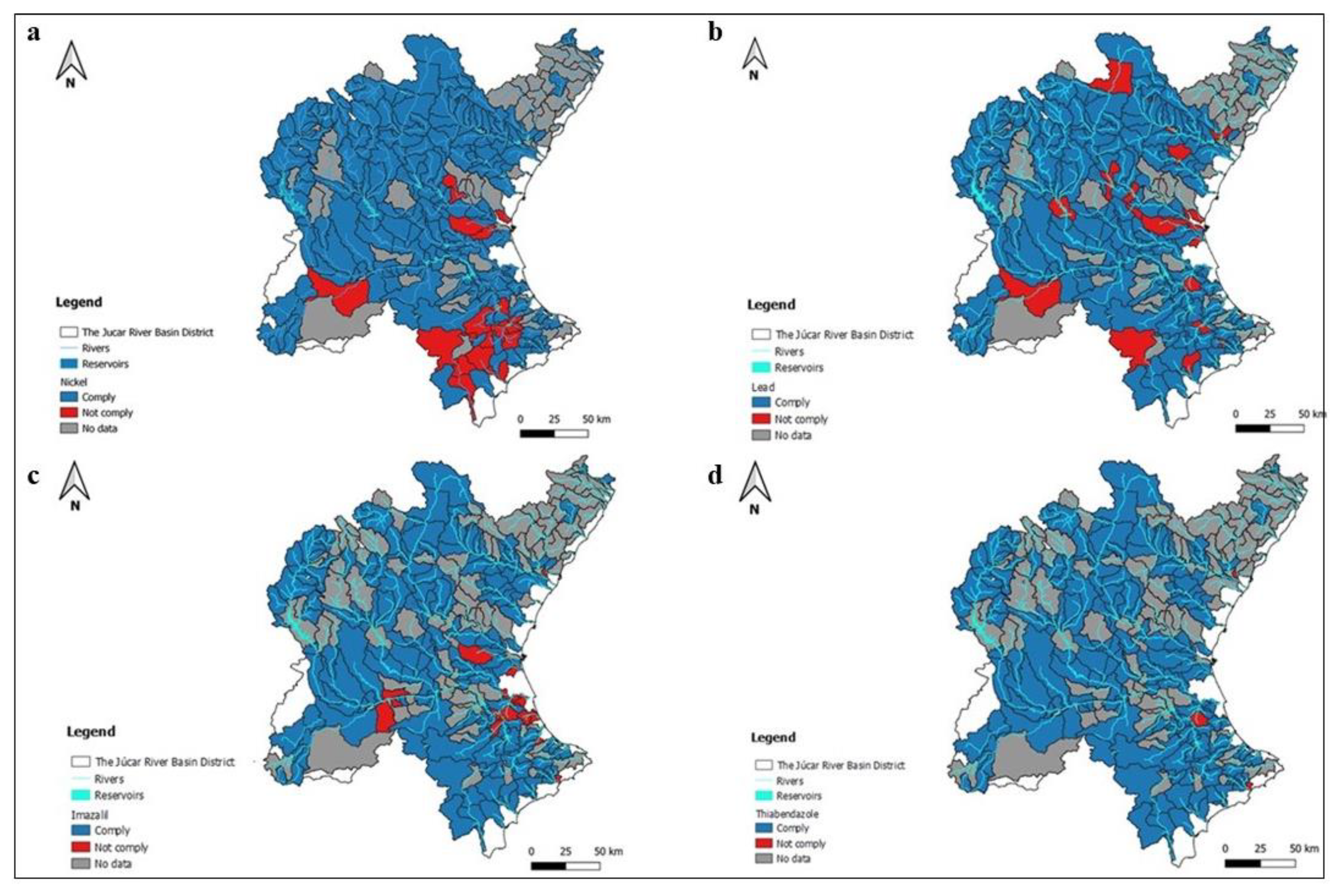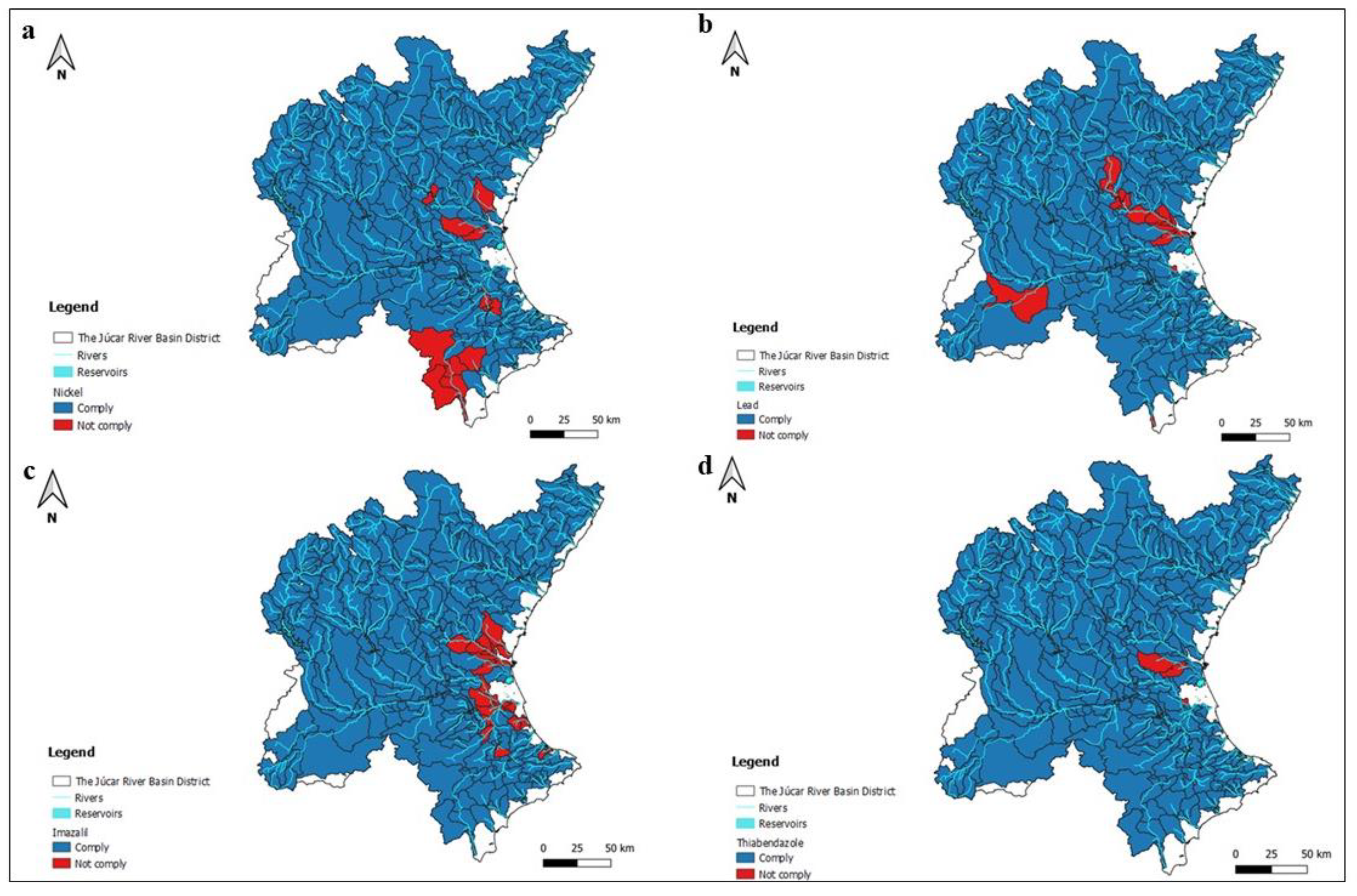 4.1. Analysis of the Chemical Status of Surface Water Bodies