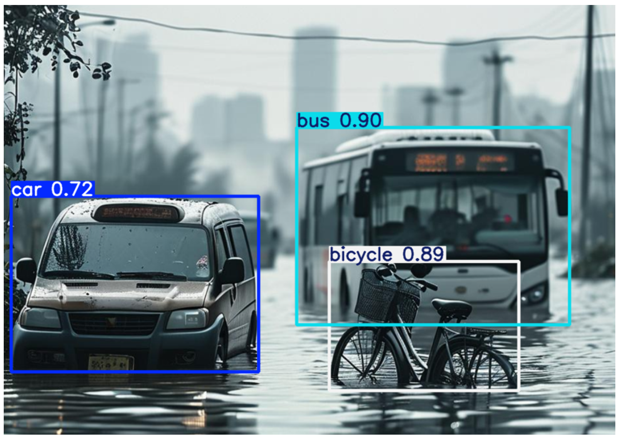 35] developed the BEW-YOLOv8 model for near fast flood depth monitoring of submerged vehicles by integrating bidirectional feature pyramid networks, effective squeeze-and-excitation, and intelligent intersection-over-union into the YOLOv8 model. Park et al. [