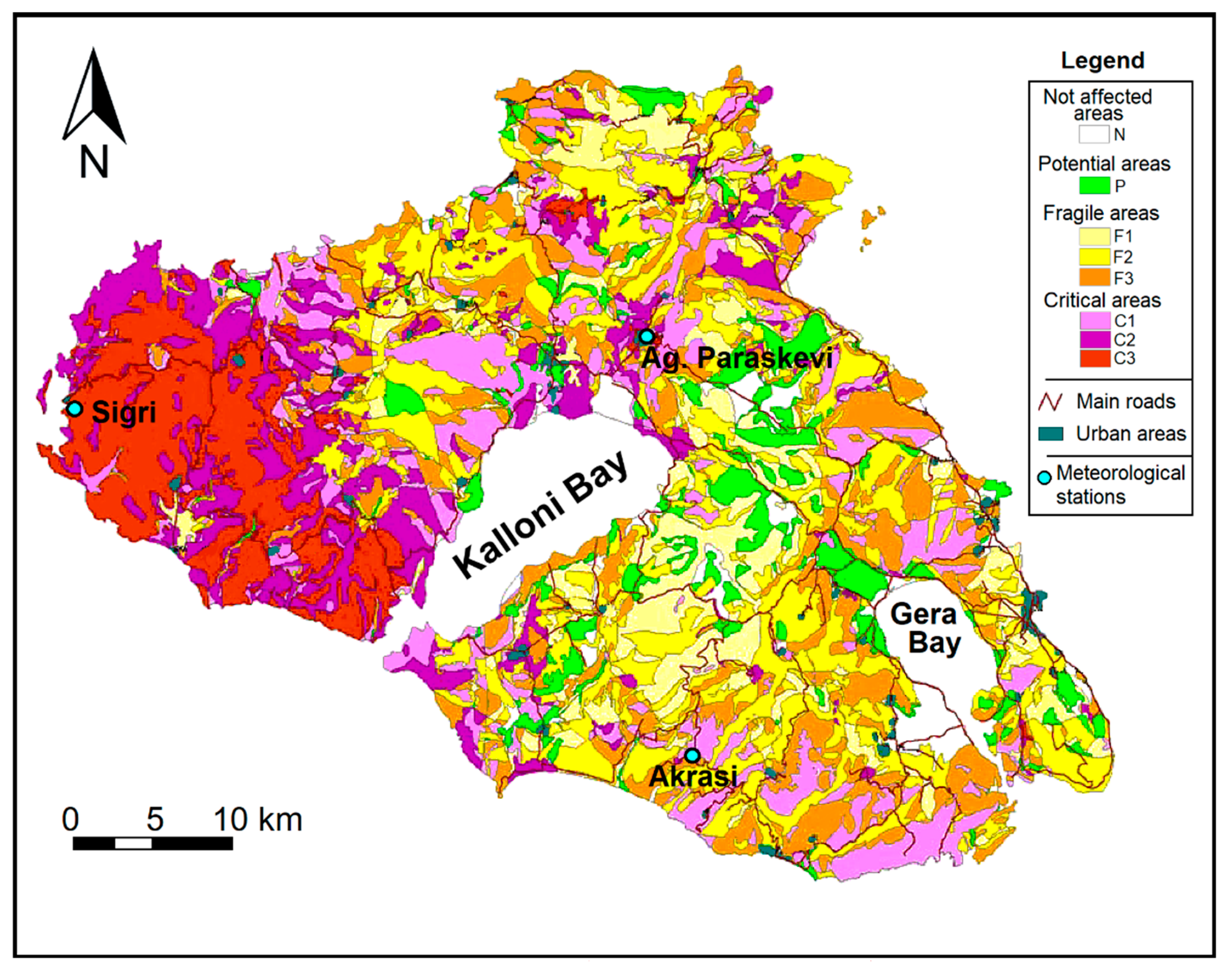 - Kosmas, C.; Ferrara, A.; Briassouli, H.; Imeson, A. Methodology for mapping Environmentally Sensitive Areas (ESAs) to Desertification. In The Medalus Project Mediterranean Desertification; Kosmas, C., Kirkby, M., Geeson, N., Eds.; European Union: Brussels, Belgium, 1999; pp. 31–47. ISBN 92-828-6349-2. [Google Scholar]