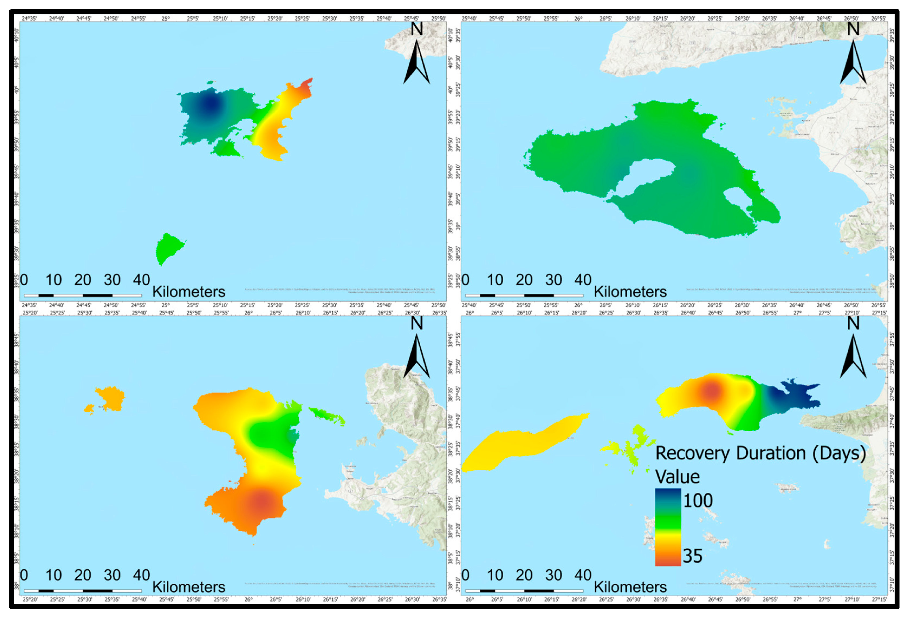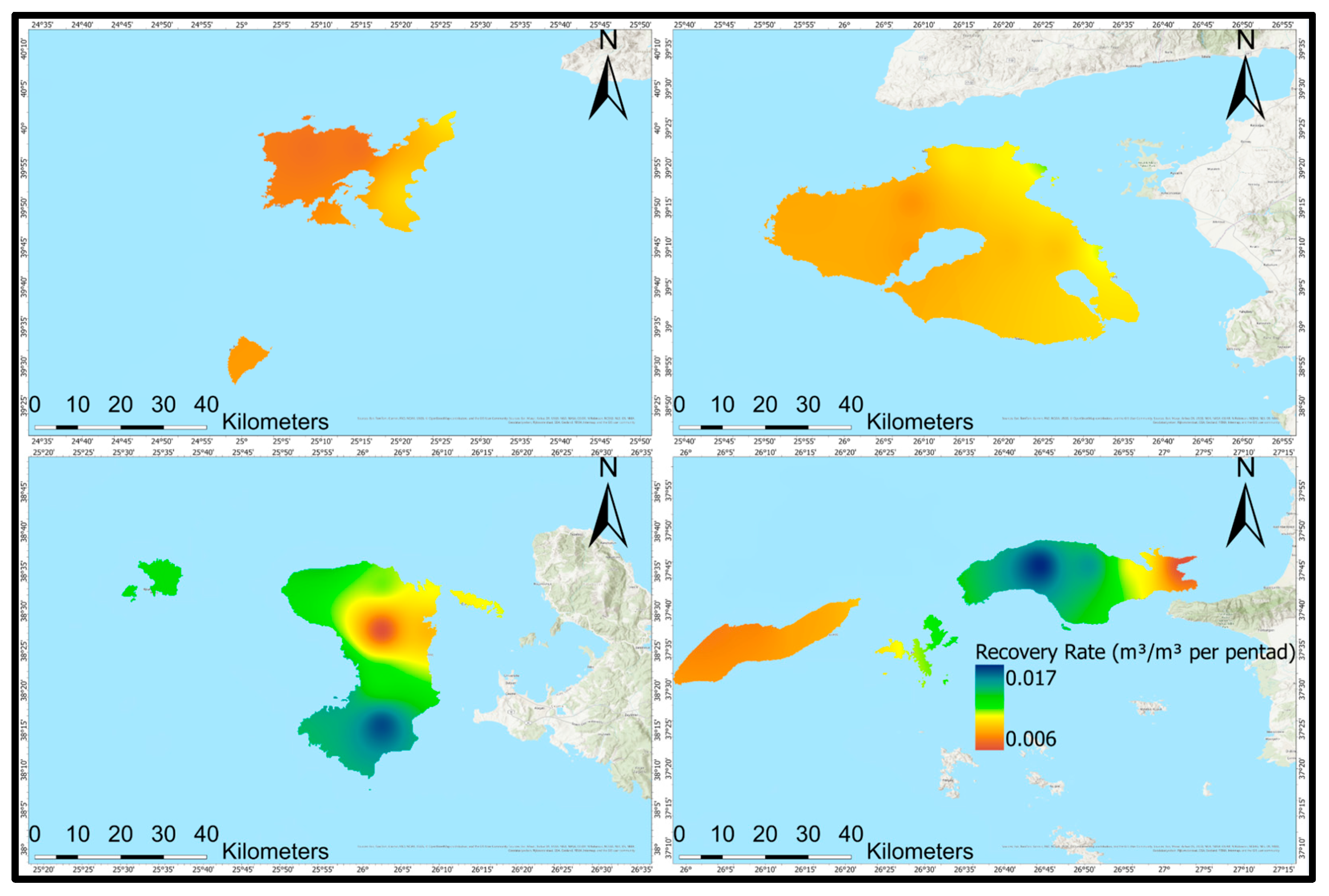 - Recovery Rate (RR): Indicates the soil moisture increases per unit time, defined as the difference between the minimum soil moisture and corresponding recovery value divided by RD (in days).