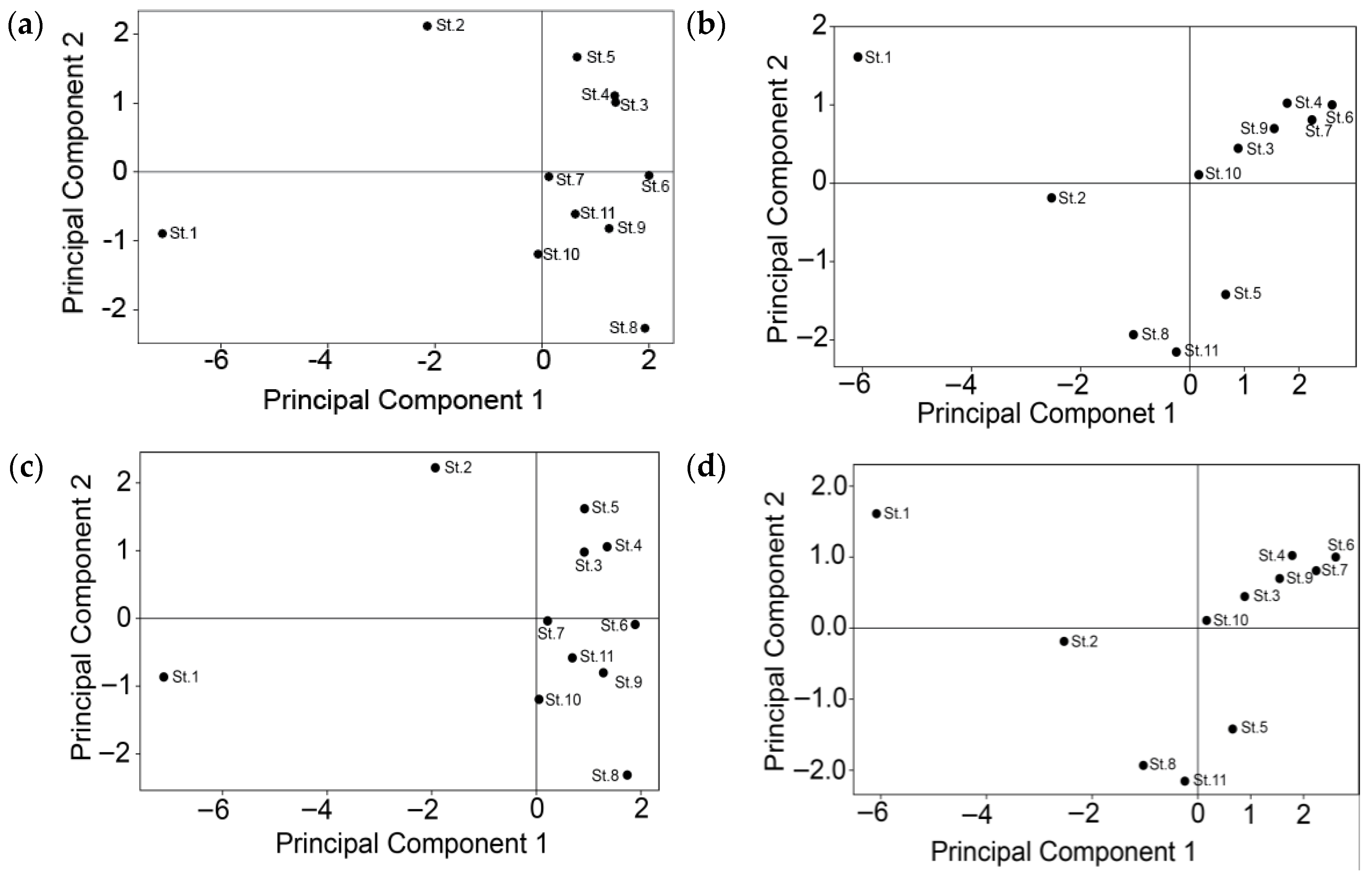- Uddameri, V.; Honnungarand, V.; Hernandez, E.A. Assessment of groundwater water quality in central and southern Gulf Coast aquifer, TX using principal component analysis. Environ. Earth Sci. 2013, 71, 2653–2671. [Google Scholar] [CrossRef]