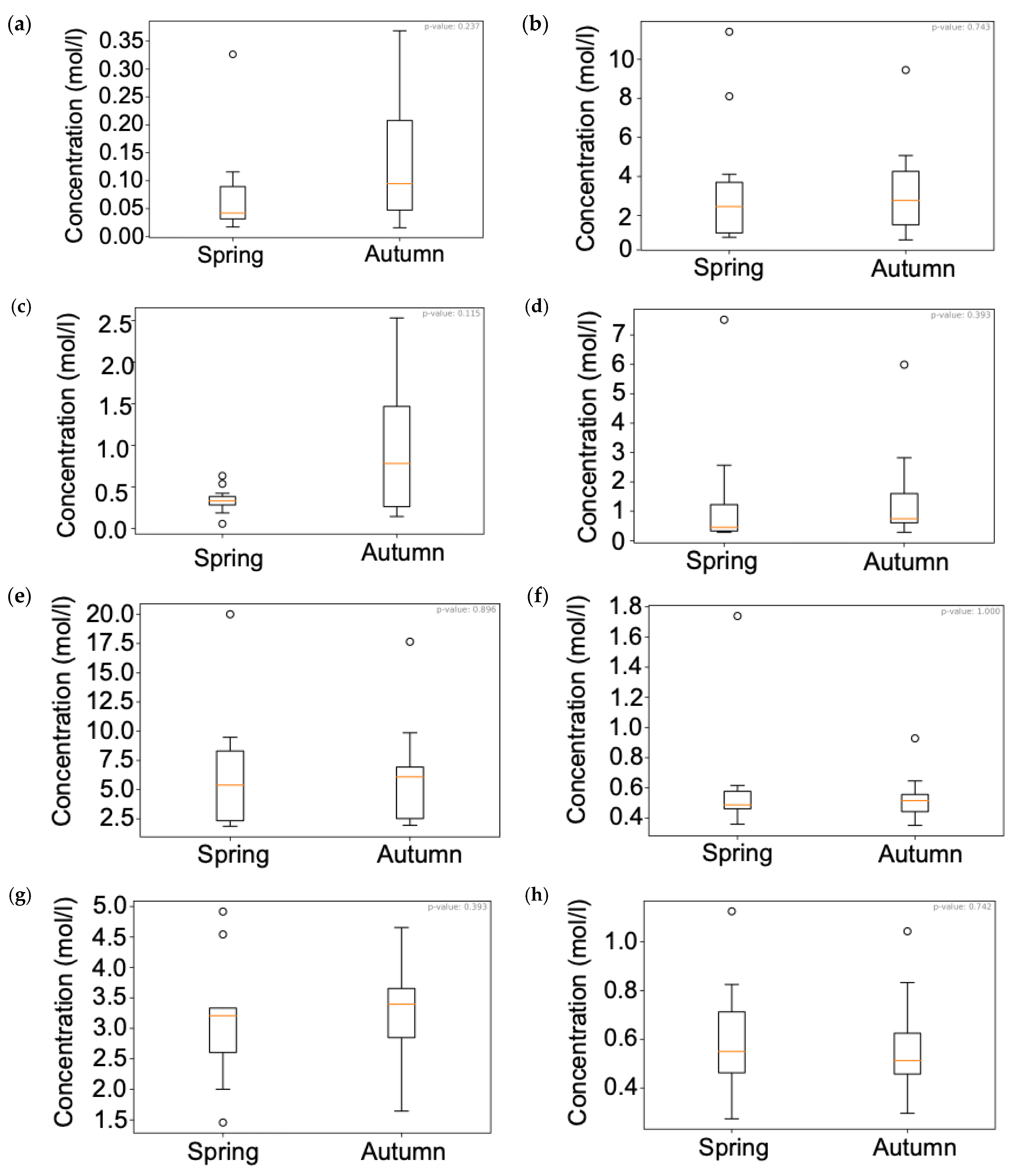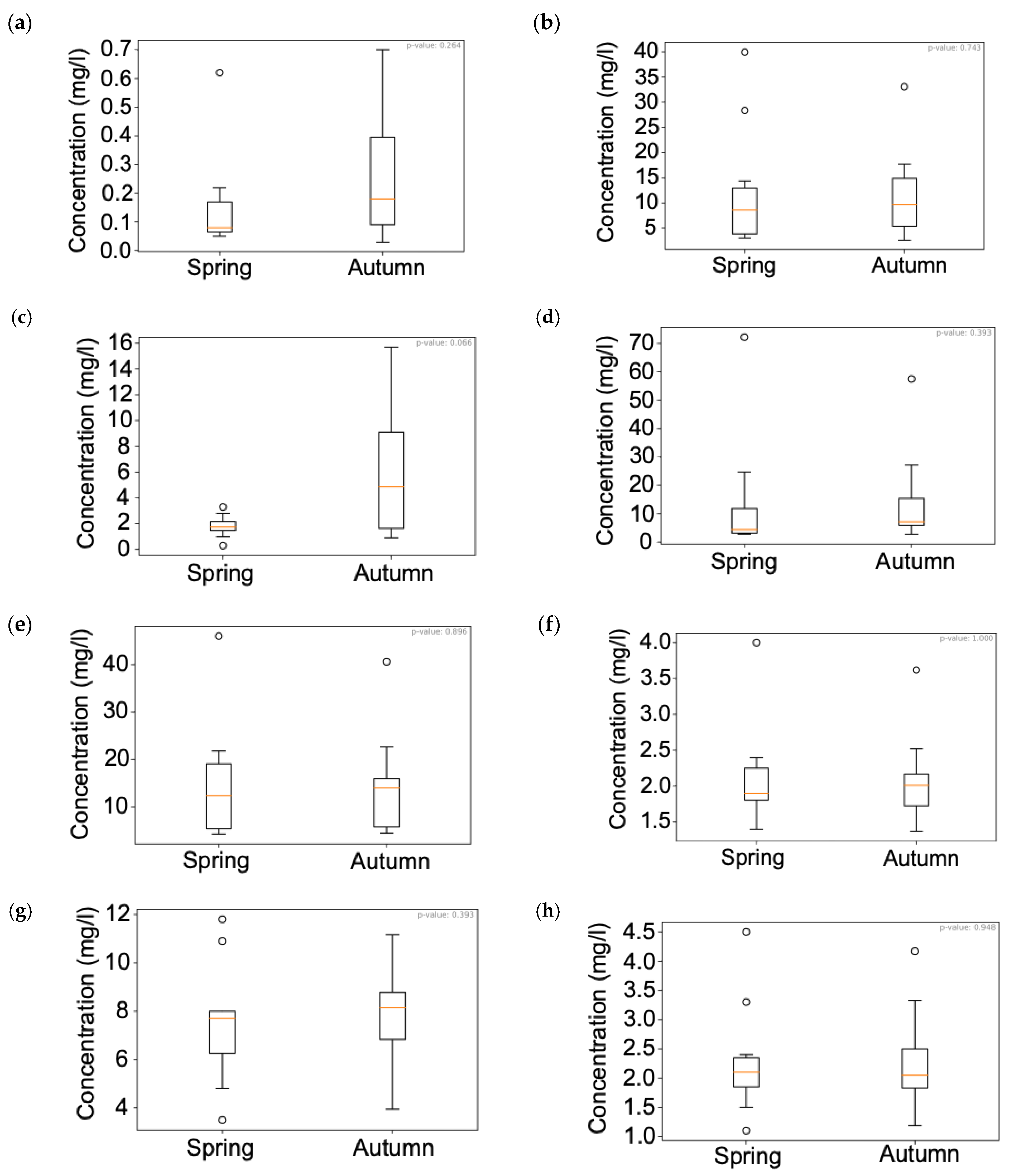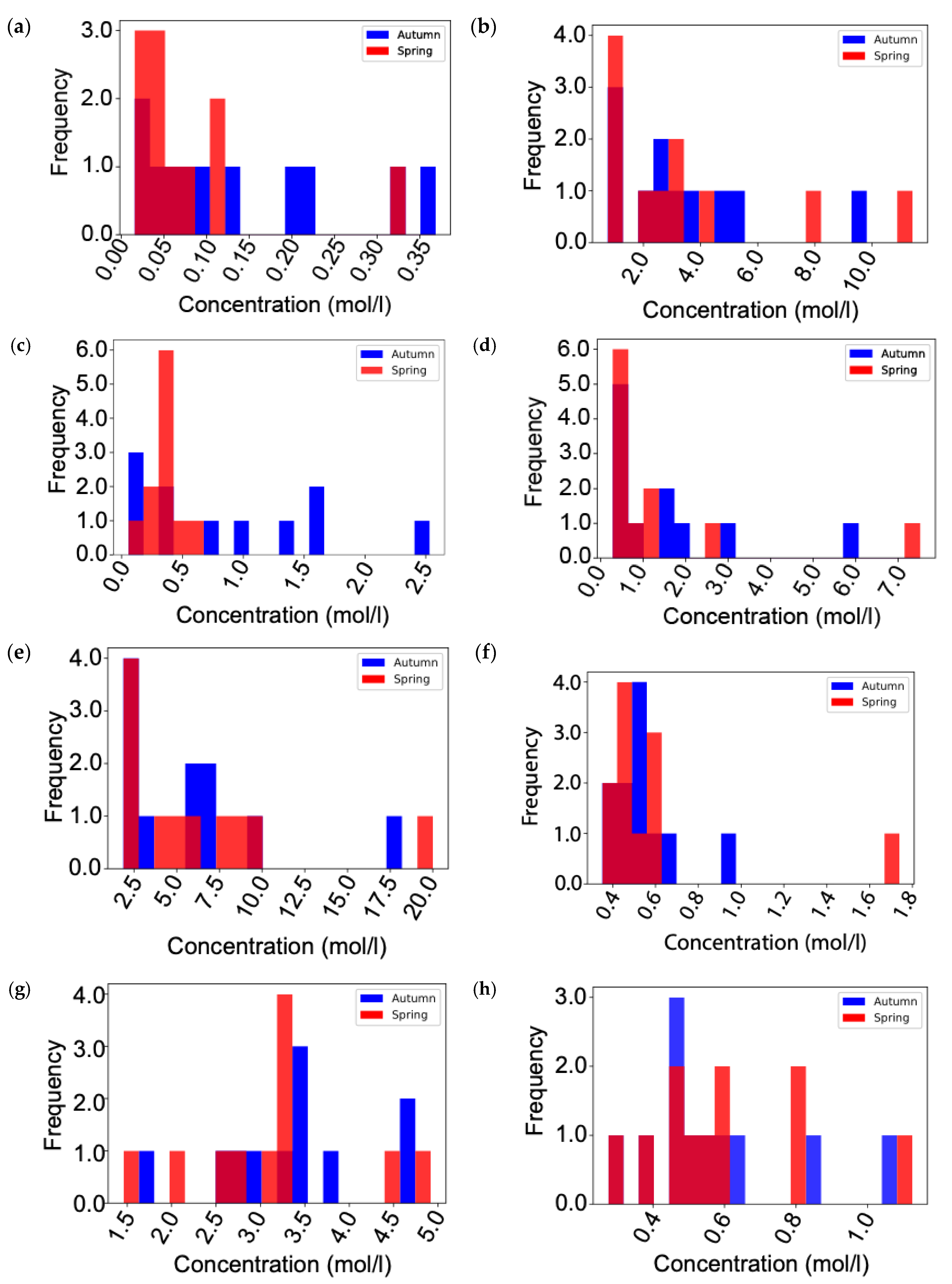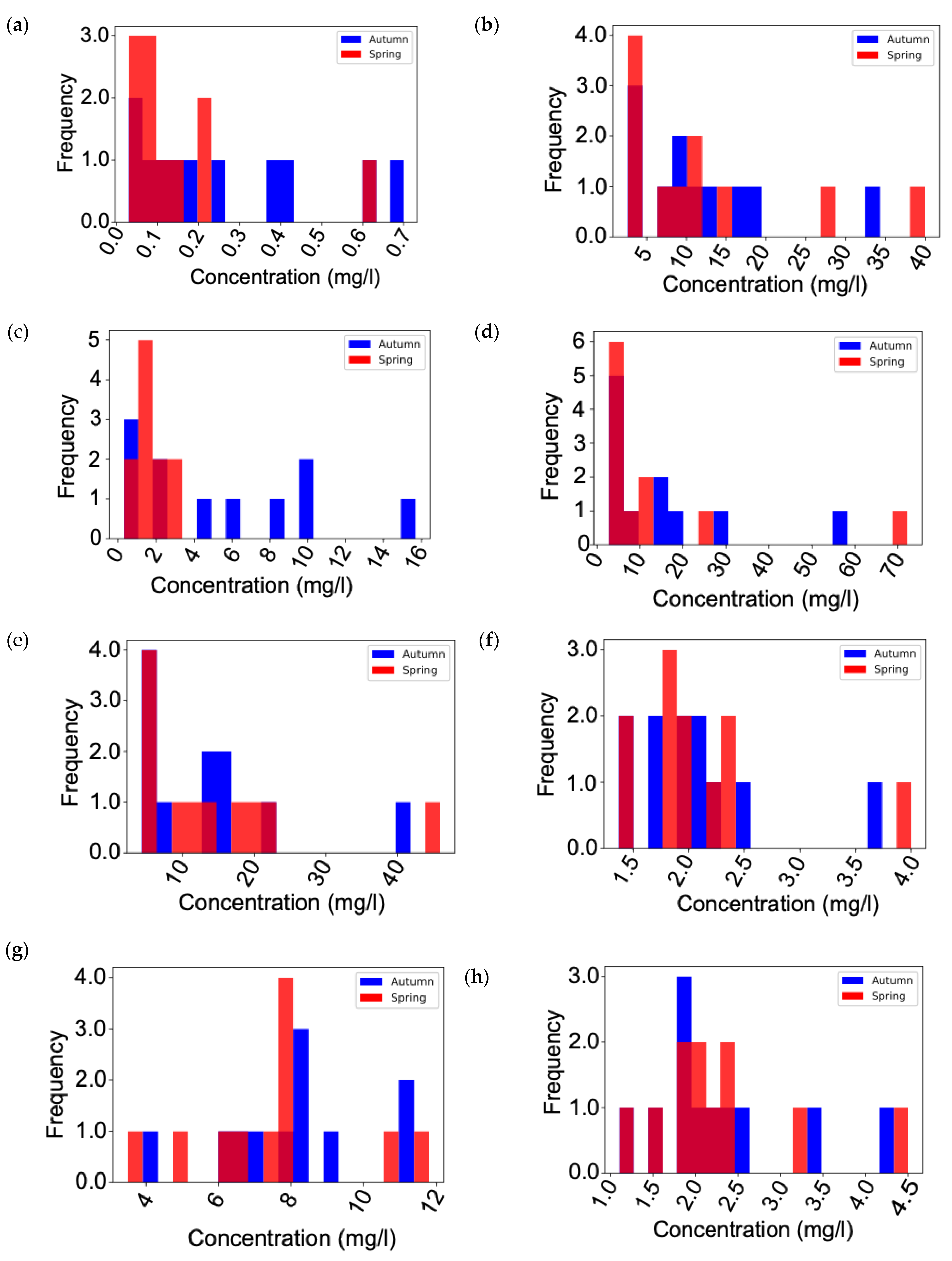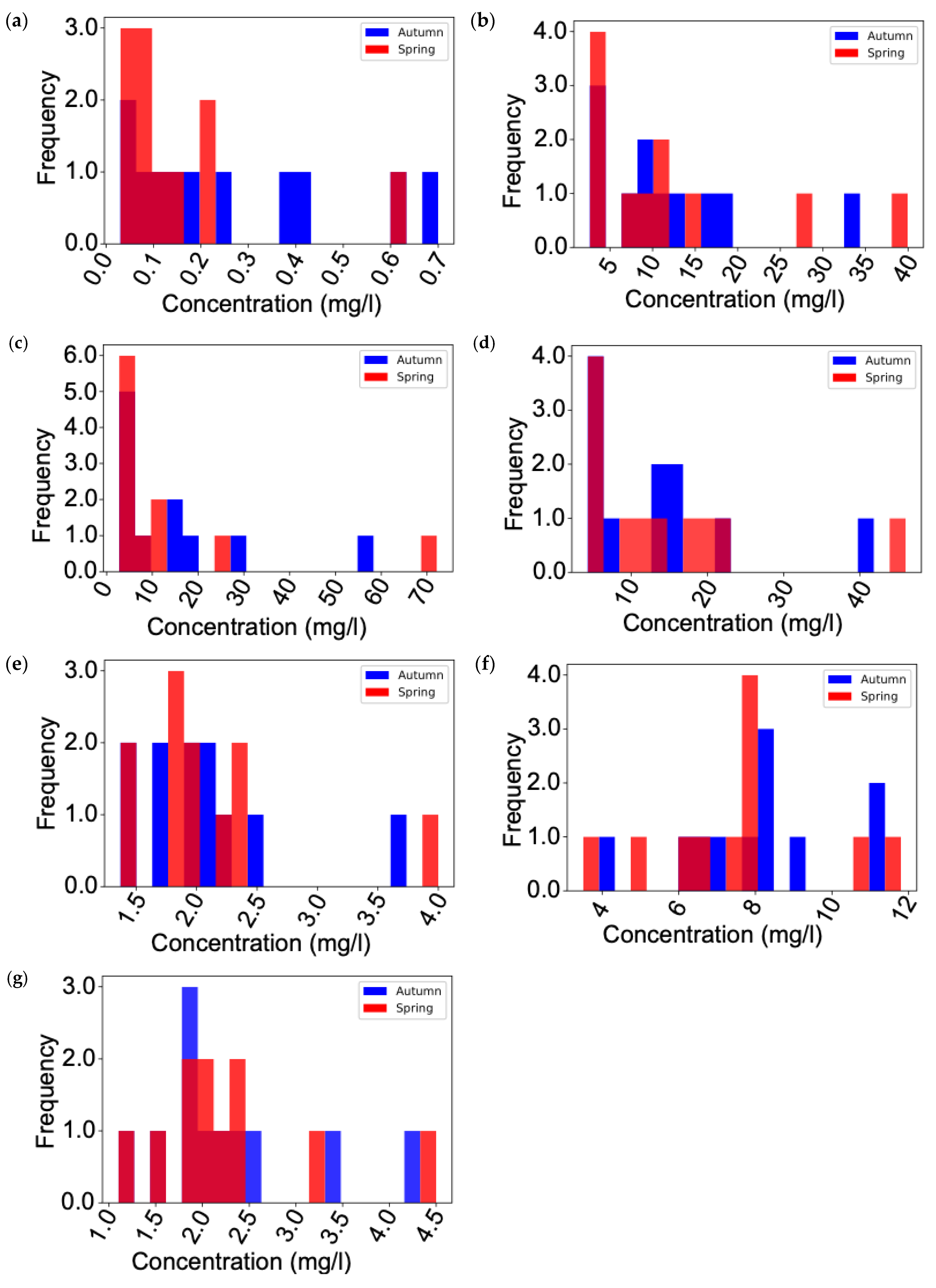 2.3. Seasonal Variation of Dissolved Ions Using Neural Networks