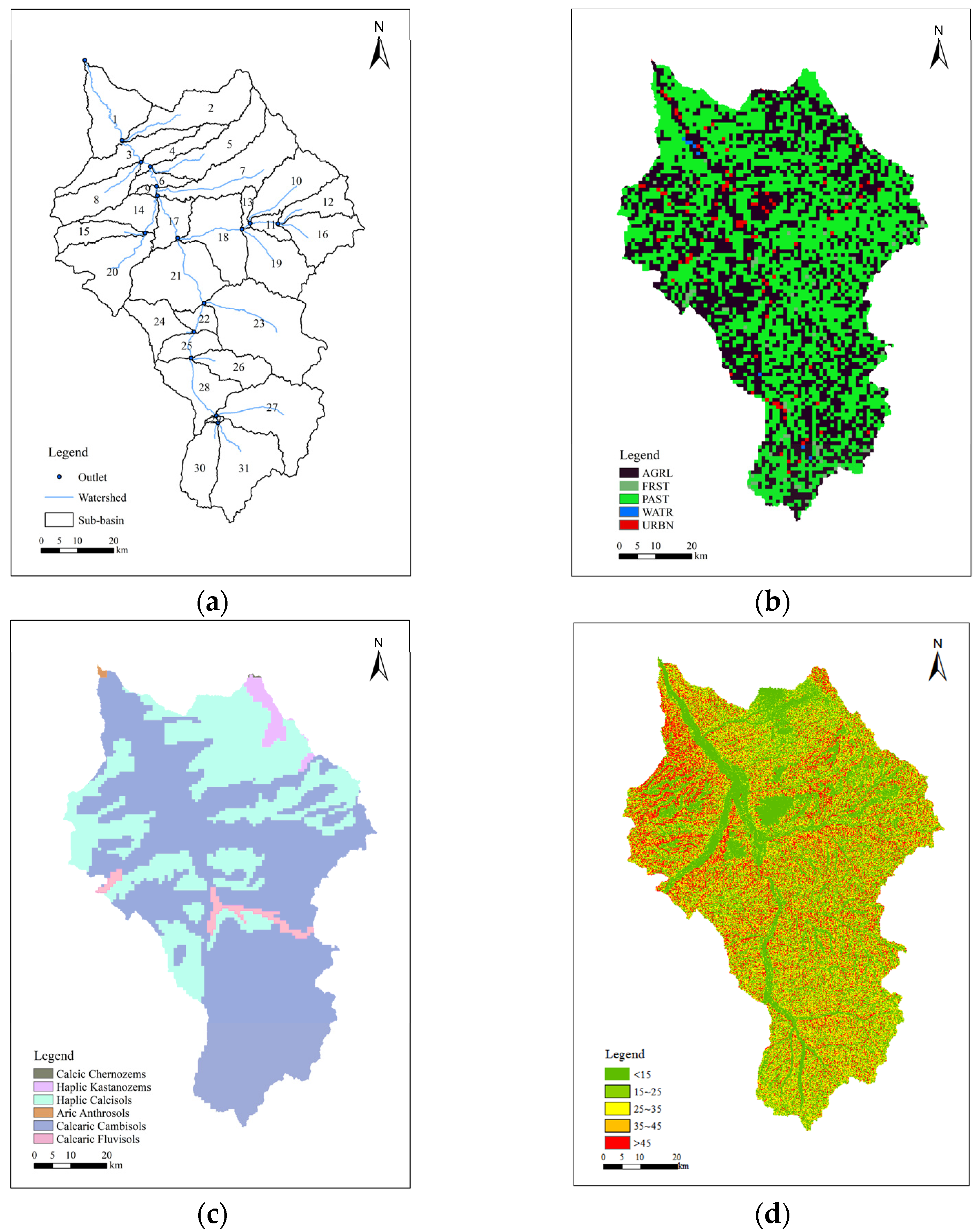 9] used the SWAT model to link eight modes of the linked Model Intercomparison Project Phase 6 to estimate and forecast runoff in the Yellow River’s source region under three SSP scenarios. Research results show applying the SWAT model can effectively capture the interannual runoff change trend. However, the simulation results have inherent uncertainties due to parameter sensitivity. Kassem et al. [