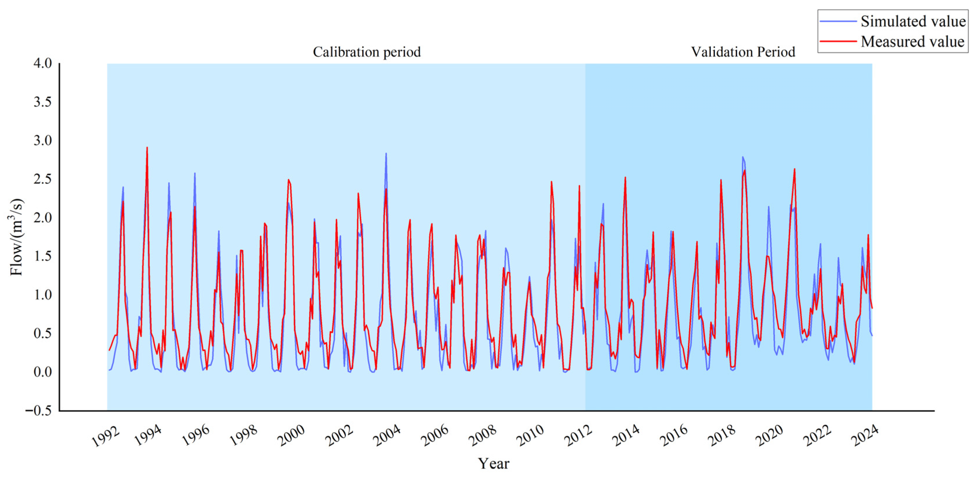 33]. The coupling model constructed in this study shows a good correlation with the measured runoff data, which has certain implications for improving the accuracy of runoff predictions. Phetanan et al. [