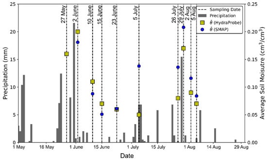 - Mohanty, B.P.; Famiglietti, J.S.; Skaggs, T.H. Evolution of soil moisture spatial structure in a mixed vegetation pixel during the Southern Great Plains 1997 (SGP97) hydrology experiment. Water Resour. Res. 2000, 36, 3675–3686. [Google Scholar] [CrossRef]