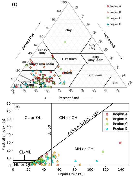 - ASTM D4318-17e1; Standard Test Methods for Liquid Limit, Plastic Limit, and Plasticity Index of Soils. American Society for Testing and Materials: West Conshohocken, PA, USA, 2010.
