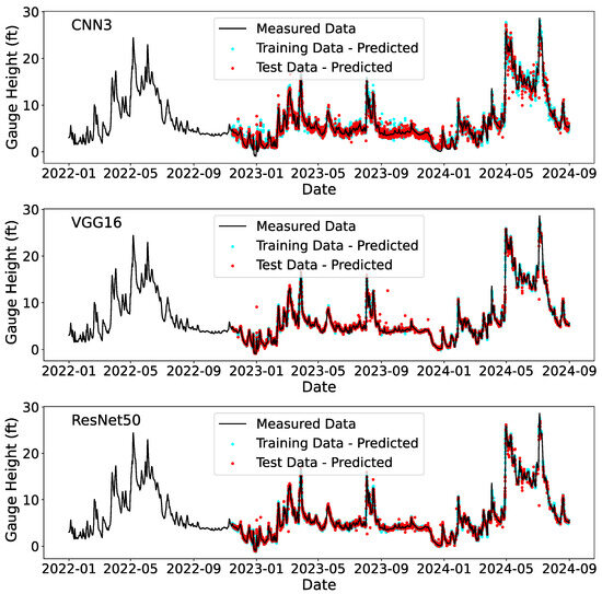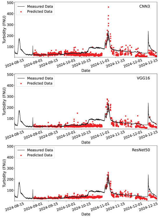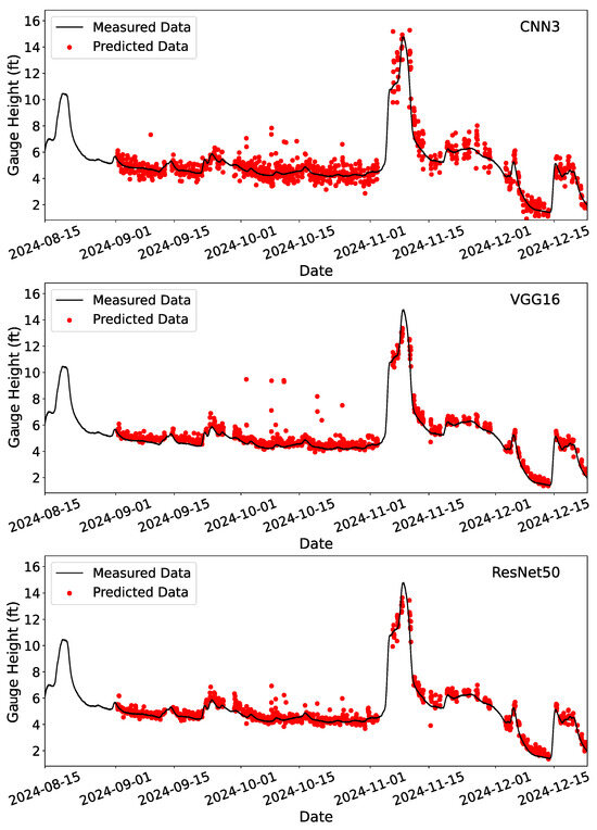 Once three optimal CNN and DL models were determined, we applied each model to the data outside the date range of training period, i.e., from 1 September to 31 December 2024. This allowed us to examine the model performance for hydrological prediction from ‘future’ images, the so-called deployment of ML models [25].