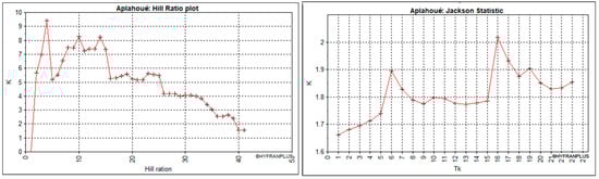 - El Adlouni, S.; Bobée, B. Analyse Fréquentielle Avec le Logiciel HYFRAN-PLUS; Université de Monctone: Moncton, NB, Canada, 2014; p. 71. [Google Scholar]