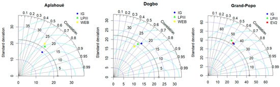 | [3] | Benin | 26 | 1921–2001 | GEV, GUM, LN, PIII, LPIII | ML | AIC, BIC | The results showed a predominance of Gumbel and Lognormal laws. |