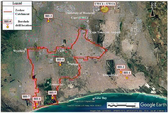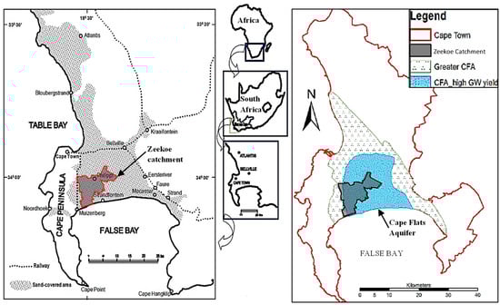 Geographical location of the Zeekoe Catchment within the Cape Flats Aquifer, Cape Town, South Africa [12,40].