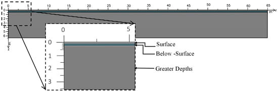 Axisymmetric model geometry for DRI test: subsurface configuration after topsoil removal.