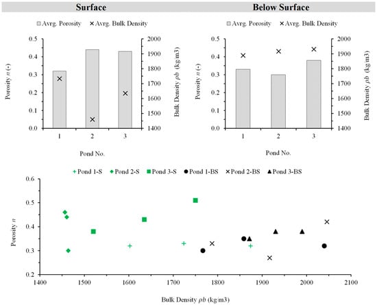 Field infiltration tests showed no improvement in measured infiltration rates when conducted 20 cm below the pond surface, suggesting the presence of a low-permeability crust layer. This crust likely formed due to runoff deposition and sieving, leading to a microstructure with distinct layered formations over time [50]. Interestingly, infiltration rates were higher when measured at the pond surface compared to 20 cm below, reinforcing the existence of a deeper layer with reduced hydraulic conductivity.
