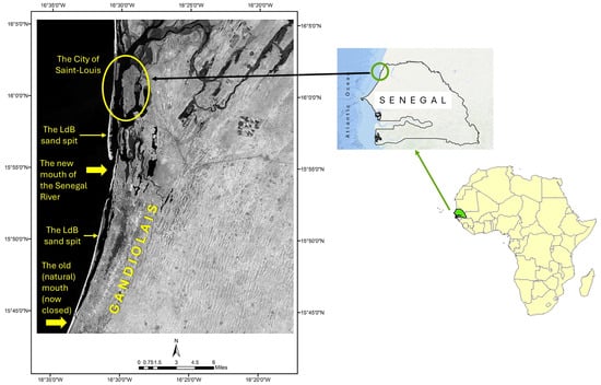 - Diakhaté, M. Dynamique Naturelle et Processus de Modélisation de La Brèche Ouverte Sur La Langue de Barbarie à Saint-Louis: Problématique et Préalables Méthodologiques. Rev. Géographie Lab. Ïde Univ. Gaston Berg. St.-Louis Senegal, 2012. Available online: https://www9.ugb.sn/revues-lsh/images/LEIDI/LEIDI10/23.%20EEN.%20Article%20Diakhat%C3%A9%20RGLL%20S%C3%A9n%C3%A9gal.pdf (accessed on 1 March 2025).