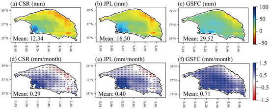 - Meng, F.; Su, F.; Li, Y.; Tong, K. Changes in Terrestrial Water Storage During 2003–2014 and Possible Causes in Tibetan Plateau. J. Geophys. Res. Atmos. 2019, 124, 2909–2931. [Google Scholar] [CrossRef]