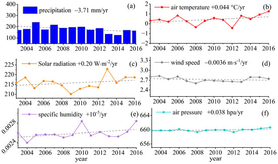 - Li, L.; Yang, S.; Wang, Z.; Zhu, X.; Tang, H. Evidence of Warming and Wetting Climate over the Qinghai-Tibet Plateau. Arct. Antarct. Alp. Res. 2010, 42, 449–457. [Google Scholar] [CrossRef]
