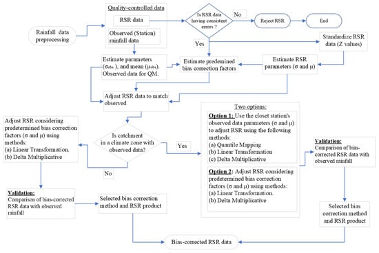 Biases in each RSR dataset were estimated as the difference between observed rainfall and RSR data at each station [,].