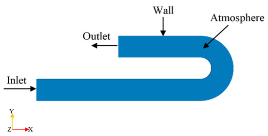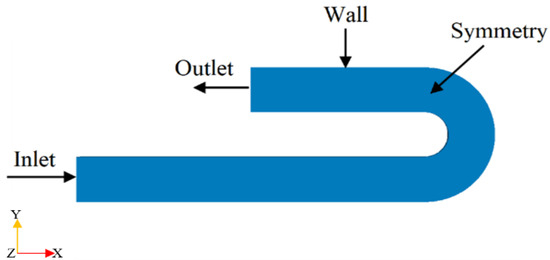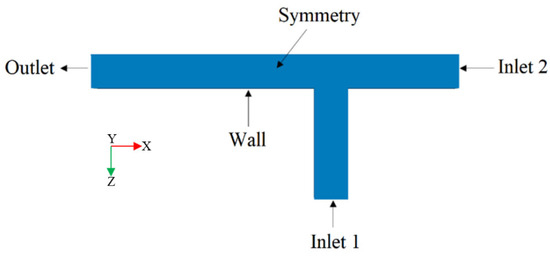 The boundary conditions for the confluent channel, as illustrated in Figure 11, were established to match those applied in the curved channel (closed-channel case), given the similarities in boundary characteristics. These conditions include the following: