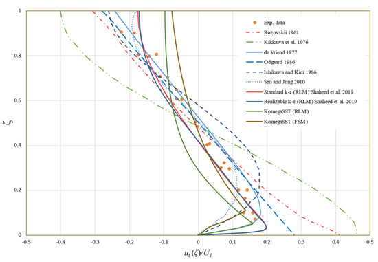 Vertical profile of transverse velocity for the Rozovskii channel [16,17,18,19,20].