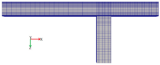 To improve the accuracy of the numerical model, a refined computational mesh was employed, as shown in Figure 4. The mesh was carefully structured to enhance resolution in key flow regions: