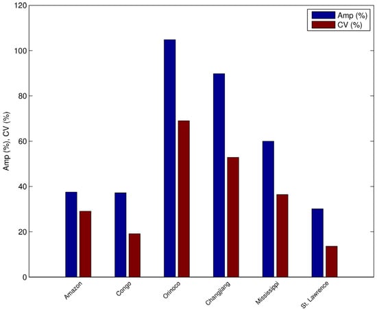 | Amazon | Amazon+ Tributaries | Congo | Orinoco | Changjiang | Mississippi | St. Lawrence | St. Lawrence + Tributaries | |