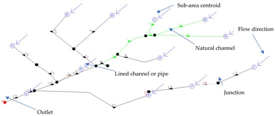 Schematic setup in MIKE+ Model (modified and adapted from [,].