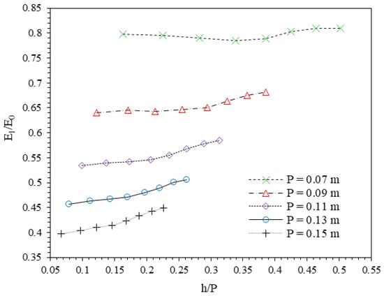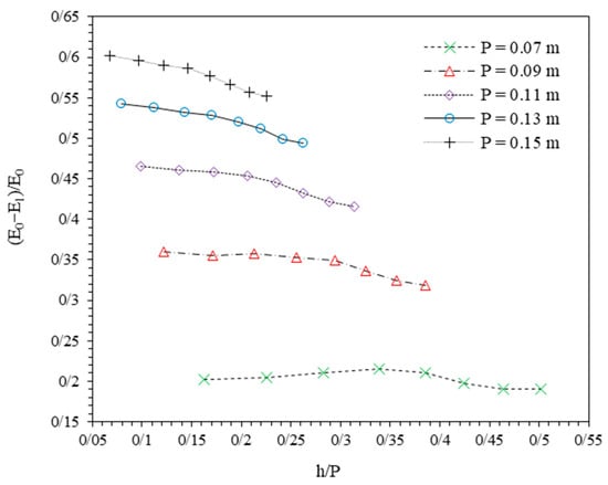 Variations of relative energy dissipation ((E0−E1)/E0) versus h/P.