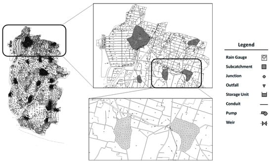 Configuration of SWMM components in the study area.