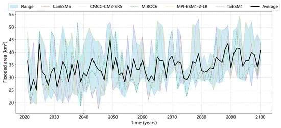 Projected annual maximum flood areas under different GCMs.