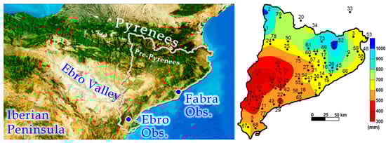 - Reial Acadèmia de Ciències i Arts de Barcelona (RACAB). Meteorologia. Dades Meteorològiques i Climàtiques. Available online: https://observatorifabra.cat/meteorologia/dades-metereologiques-i-climatiques/ (accessed on 13 July 2025).