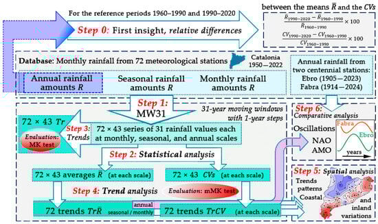 Serra, C.; Casas-Castillo, M.d.C.; Rodríguez-Solà, R.; Periago, C. Evolution of Rainfall Characteristics in Catalonia, Spain, Using a Moving-Window Approach (1950–2022). Hydrology 2025, 12, 194. https://doi.org/10.3390/hydrology12070194