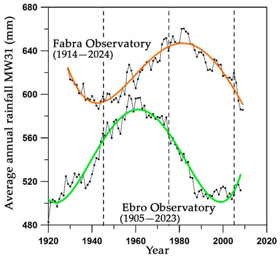 - Martín-Vide, J.; Moreno-García, M.C. Análisis de la serie secular de precipitación anual del Observatorio Fabra (Barcelona) (1914–2020). Geographicalia 2021, 73, 81–94. [Google Scholar] [CrossRef]