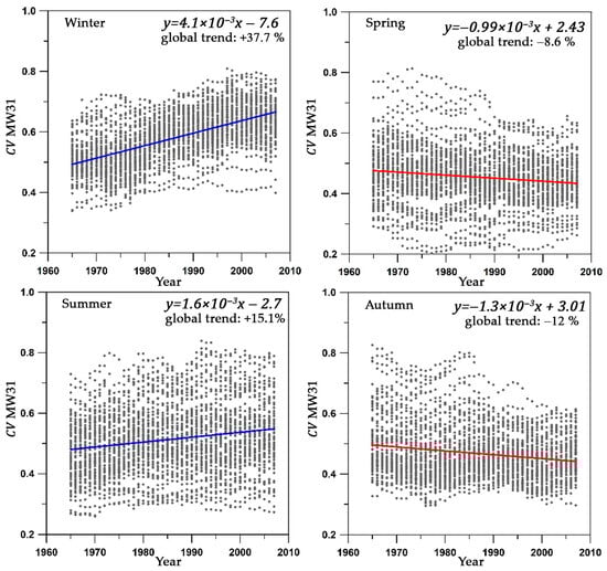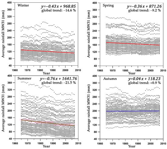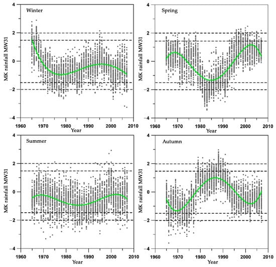 3.2.2. Trends in Seasonal Amounts Within Each 31-Year Window