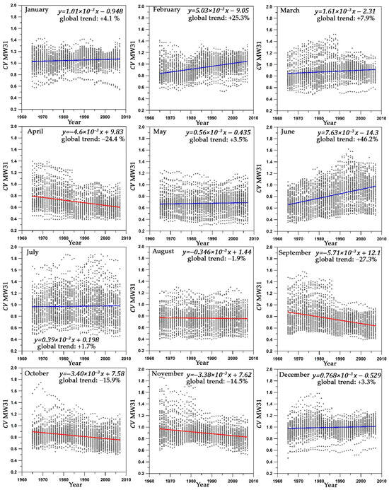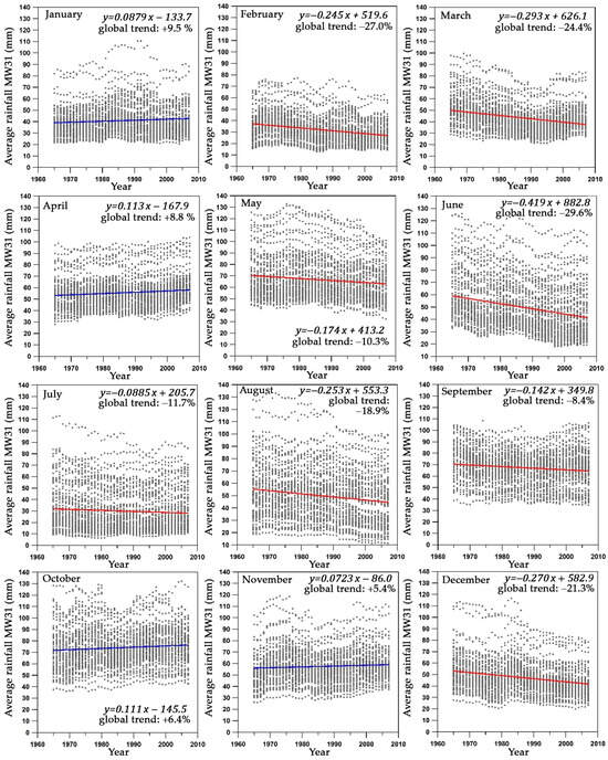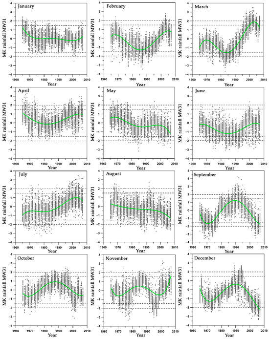 3.3.2. Trends of Monthly Amounts Within Each 31-Year Window