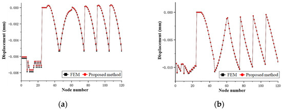 Nodal displacements in X and Y directions. (a) X-direction nodal displacement. (b) Y-direction nodal displacement.